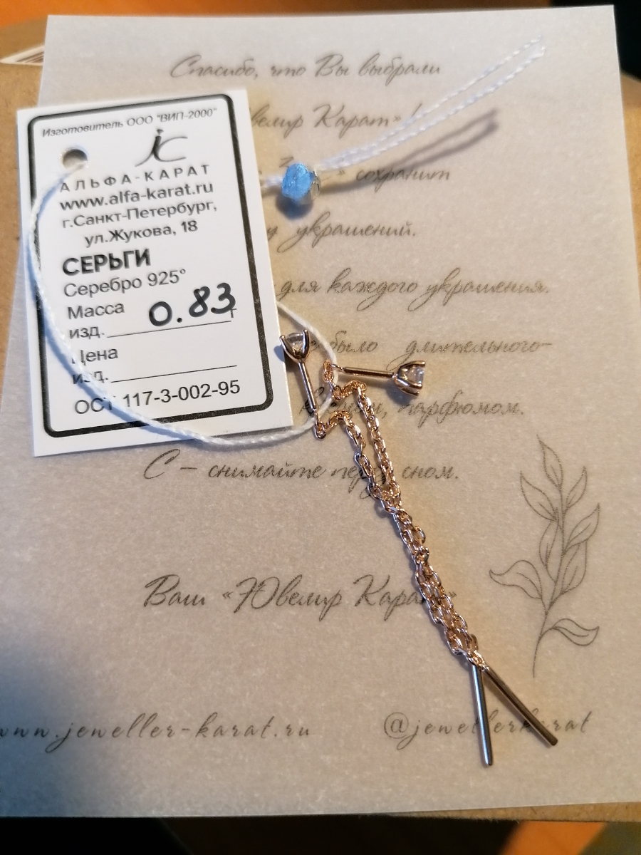 Ювелир Карат Серьги серебряные длинные протяжки с фианитами на цепочке минимализм