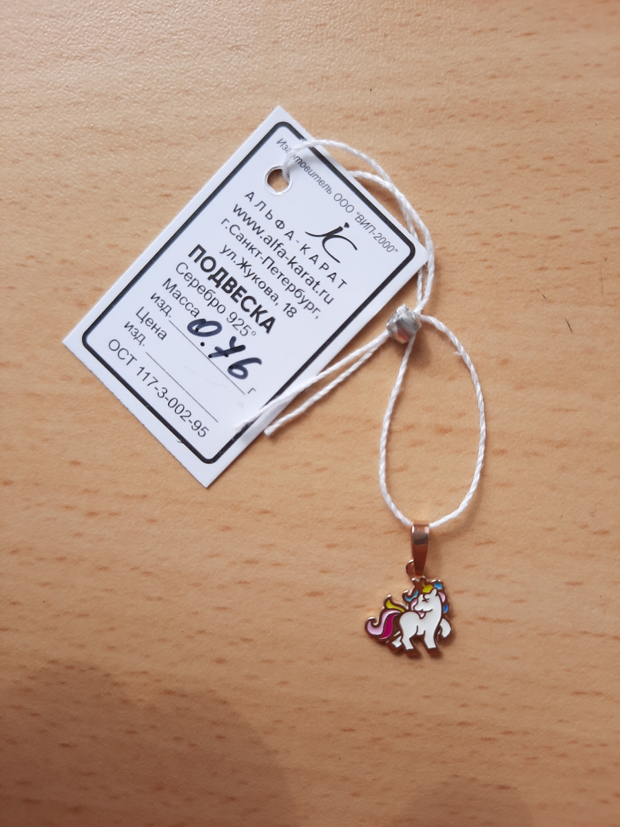 Ювелир Карат Подвеска Кулон серебряный в позолоте Единорог с эмалью, серебро 925