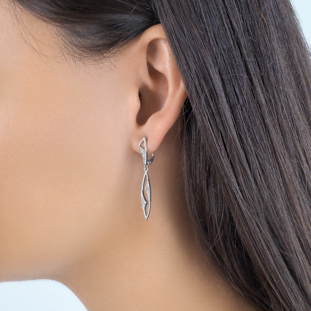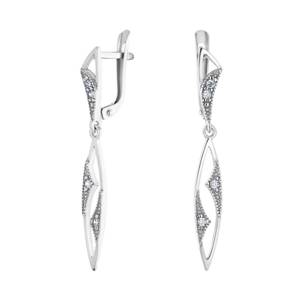 Ювелир Карат Серьги серебряные длинные цепочки с фианитами, серебро 925