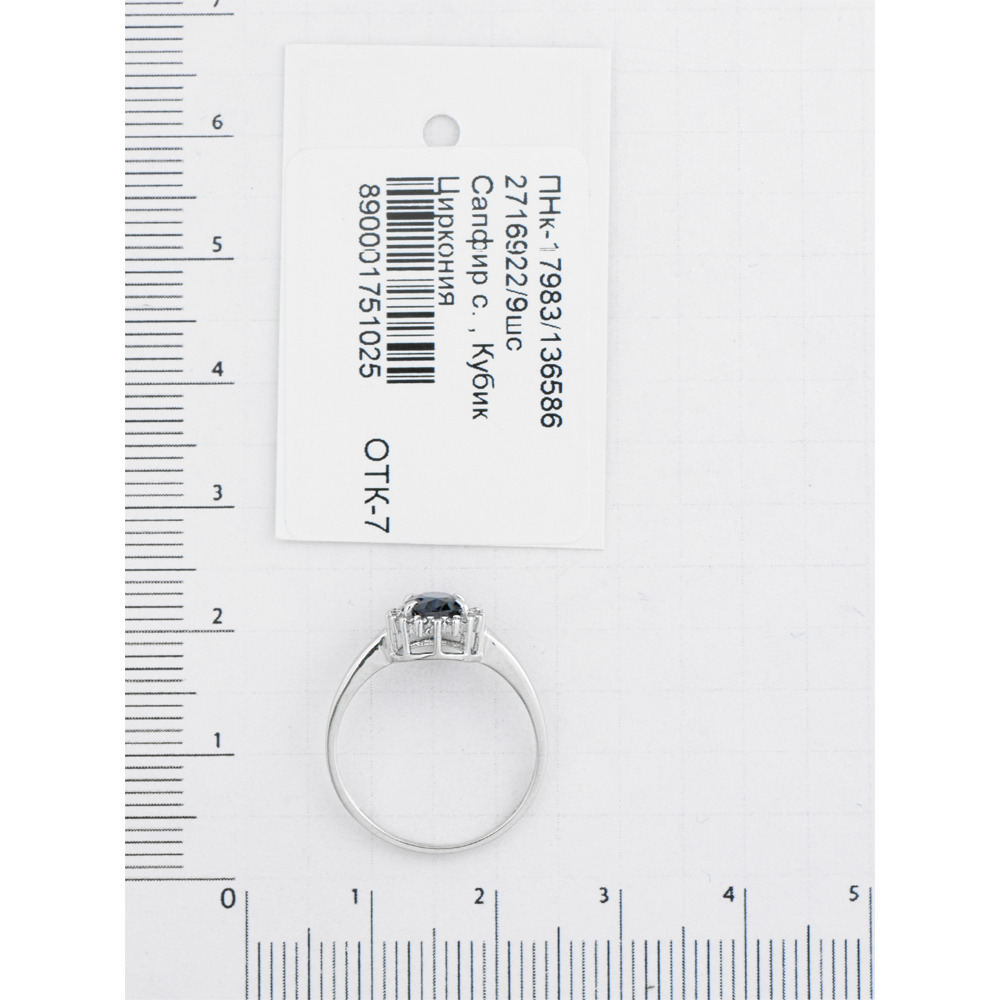 Ювелир Карат Кольцо серебряное со шпинель сапфиром и фианитами, серебро 925