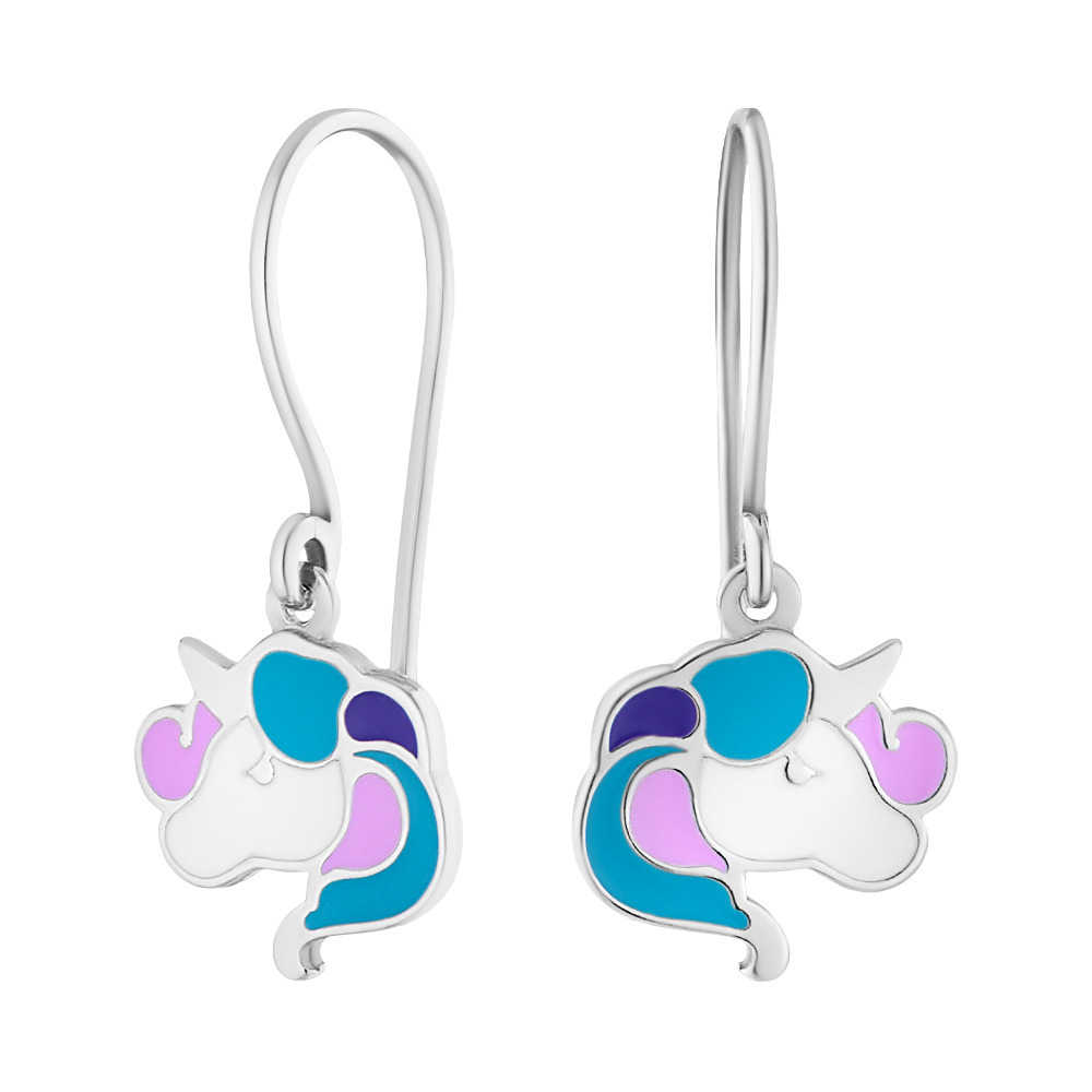 Ювелир Карат Серьги ювелирные серебряные для детей, на крючках "Единорог" с эмалью, серебро 925