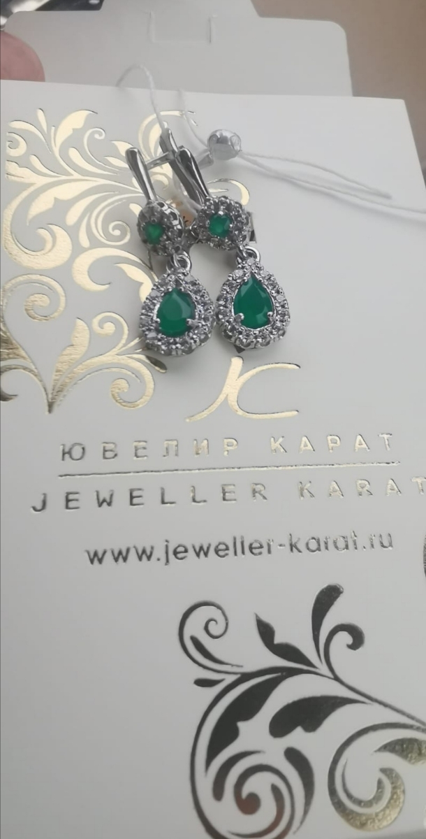 Ювелир Карат Серьги серебряные Капли с фианитами и сапфиром с., хризопразом, топазом с., гранатом с.