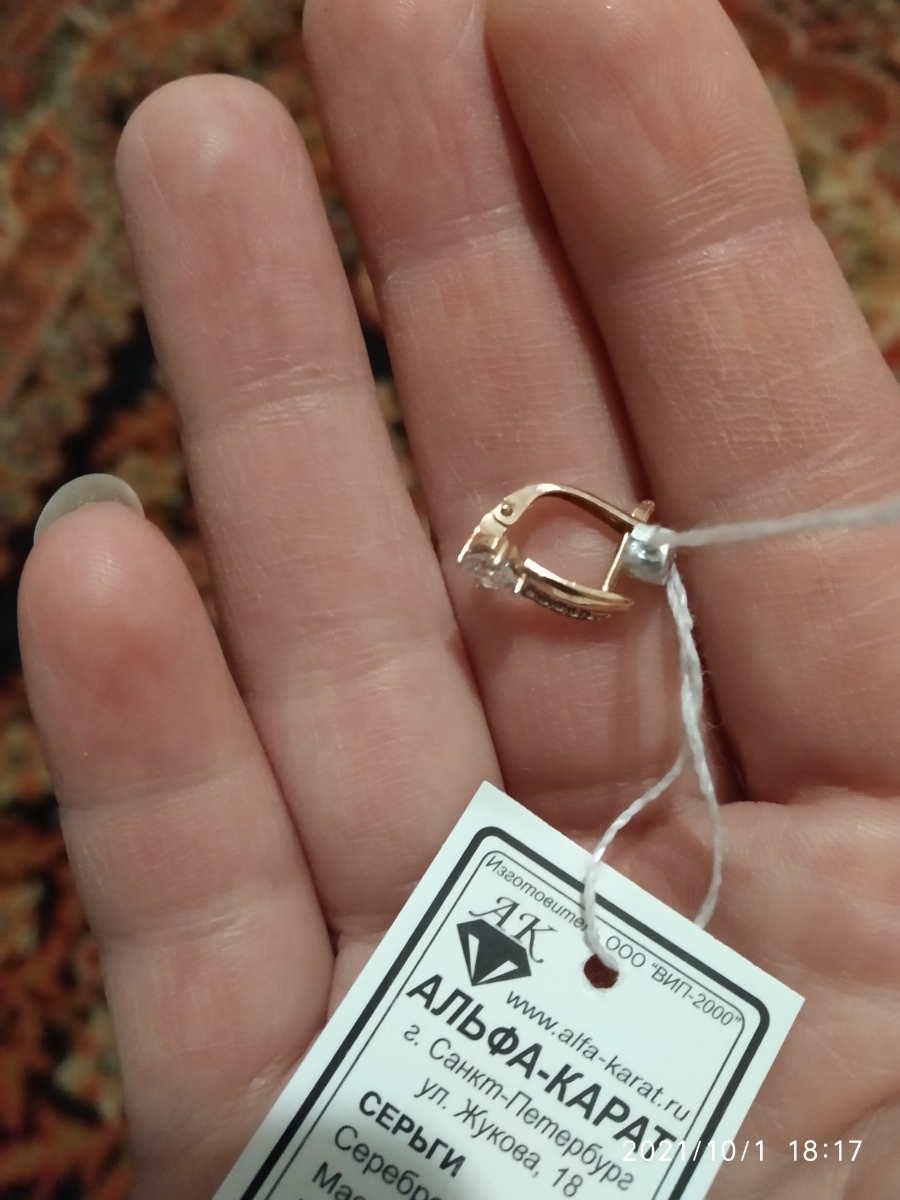 Ювелир Карат Серьги серебряные с алмазной гранью в позолоте