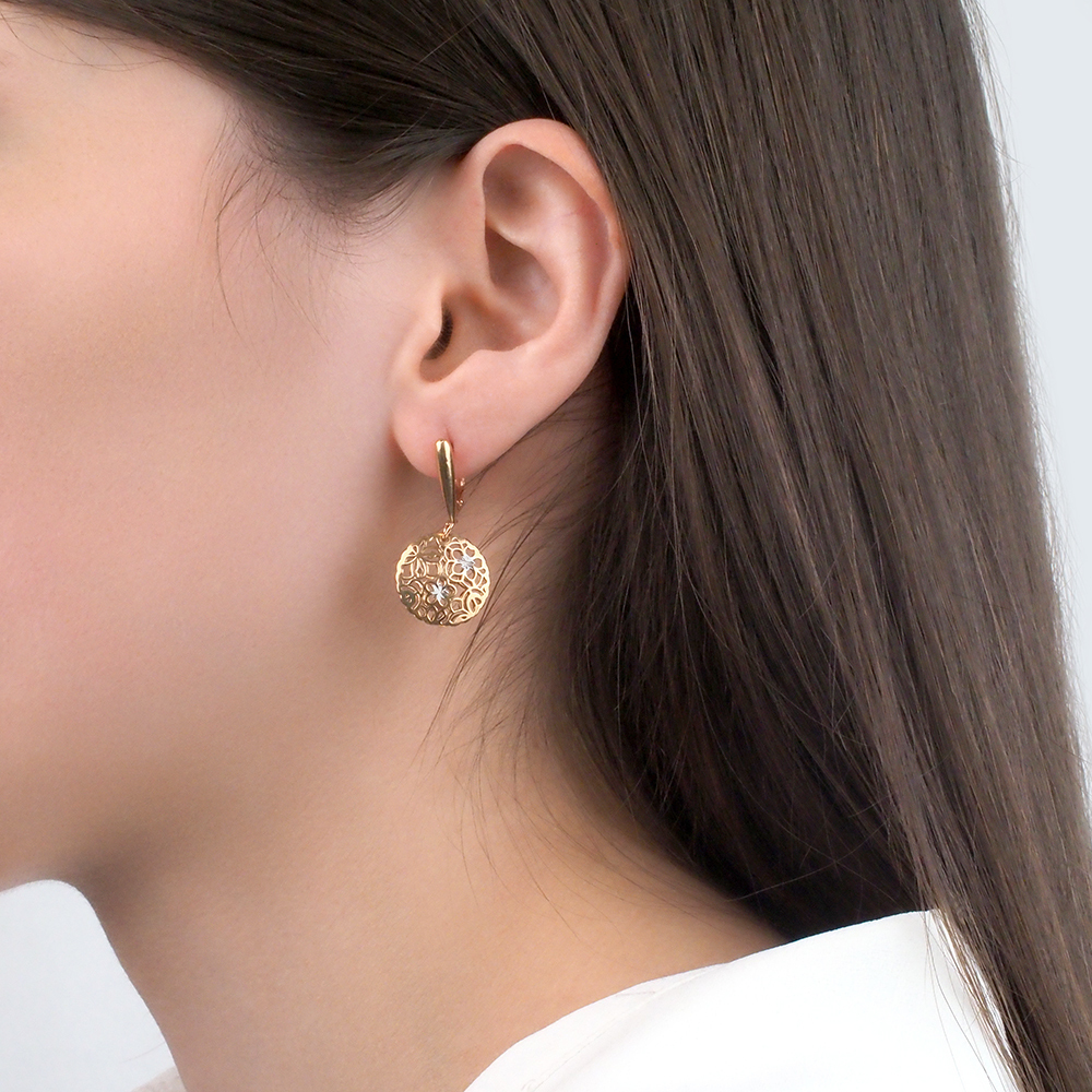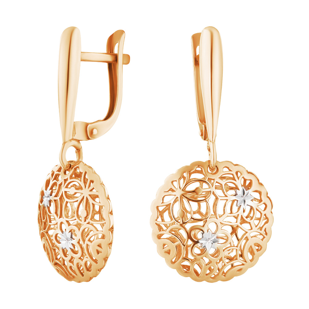 Ювелир Карат Серьги ювелирные серебряные с подвесками "Цветы", серебро 925, родий / позолота