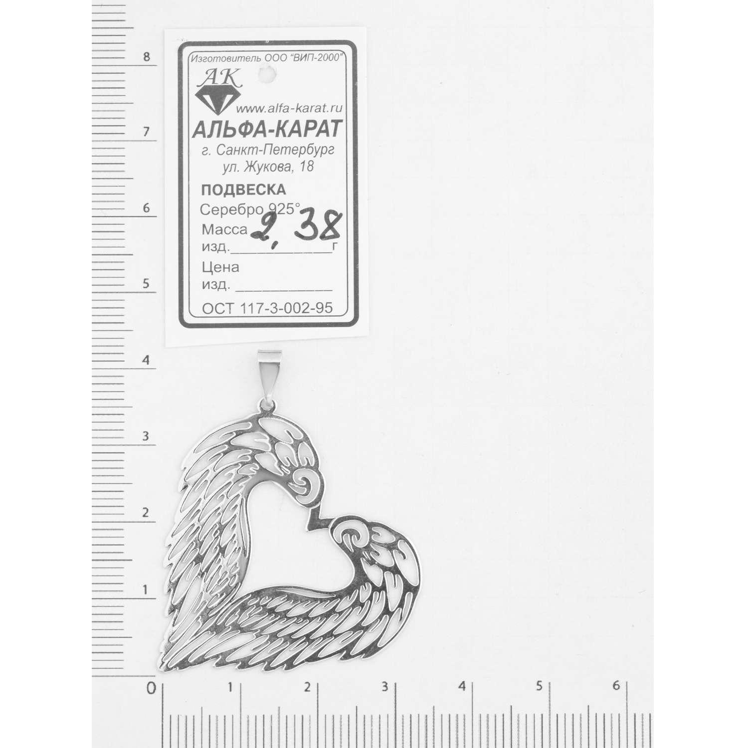 Ювелир Карат Подвеска Кулон серебряный Сердце/ Крылья, серебро 925