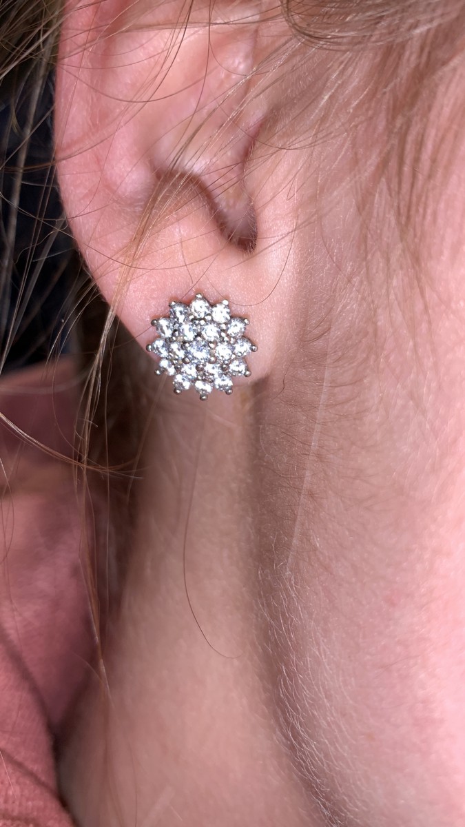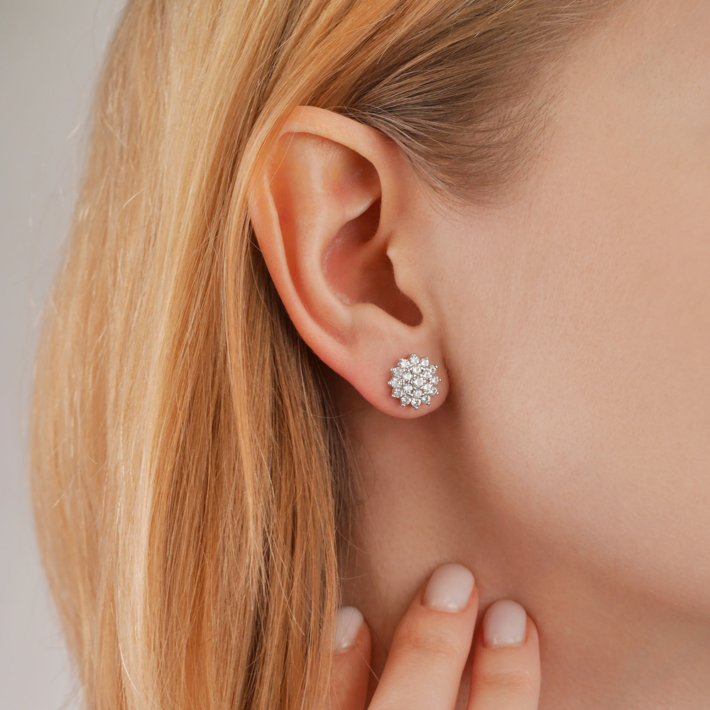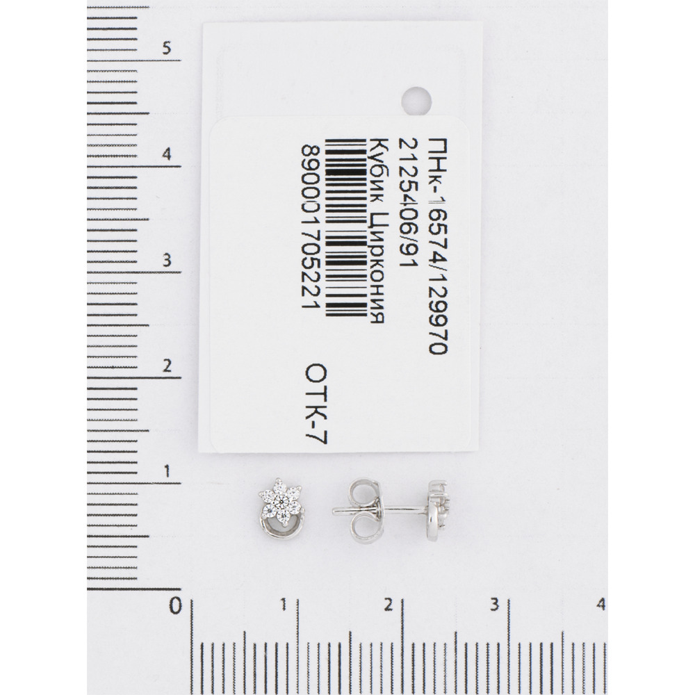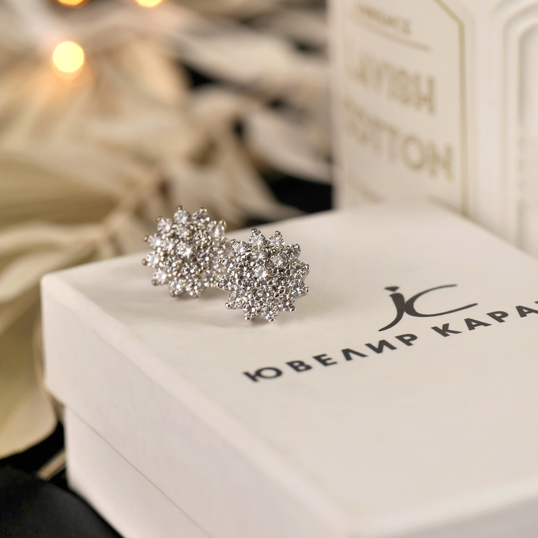 Ювелир Карат Серьги серебряные пусеты, гвоздики "Снежинки" с фианитами