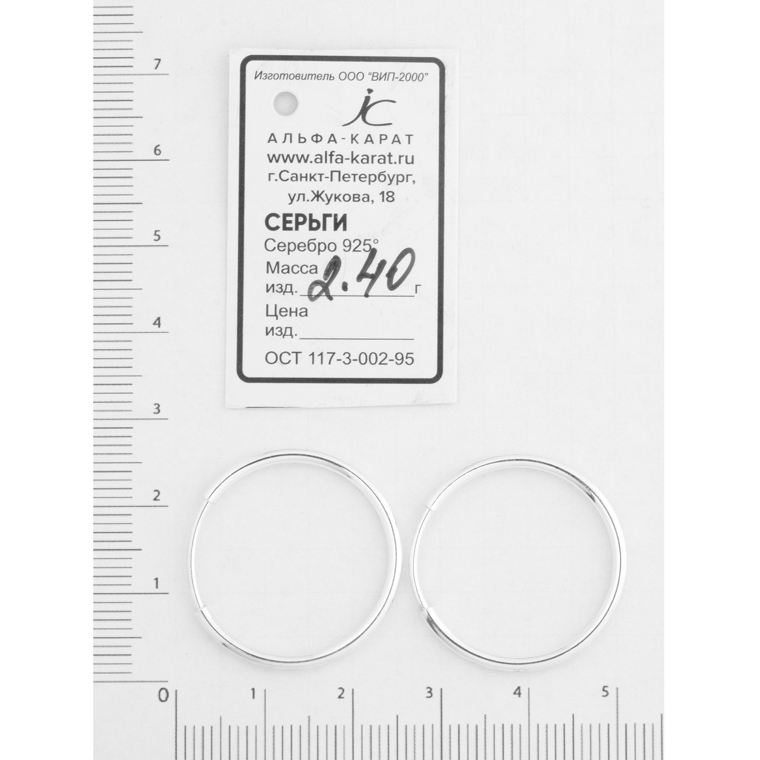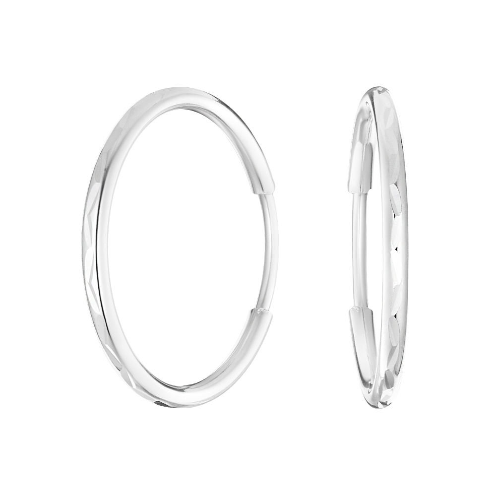 Ювелир Карат Серьги серебряные круглые конго, кольца с алмазной гранью, серебро 925