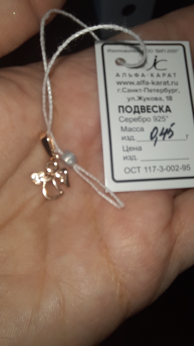 Ювелир Карат Подвеска Кулон серебряный Ангел с фианитами, серебро 925