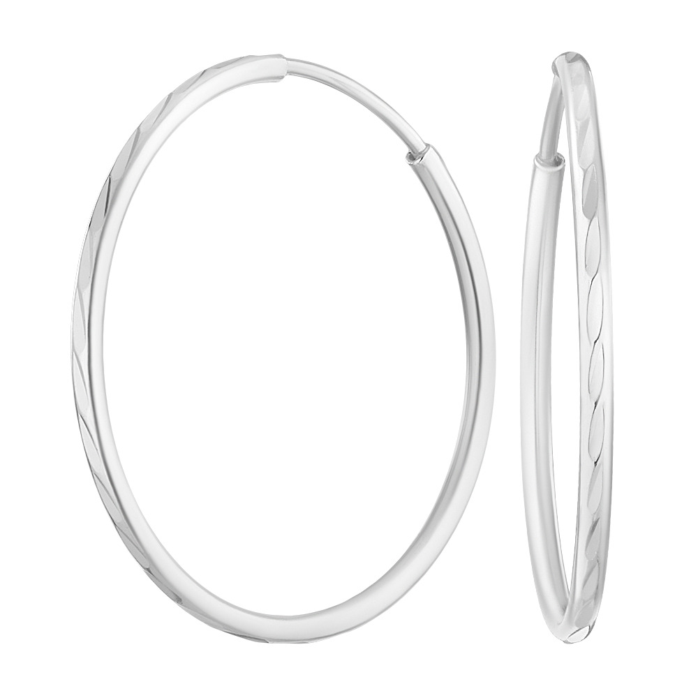 Ювелир Карат Серьги серебряные круглые конго, кольца с алмазной гранью, серебро 925