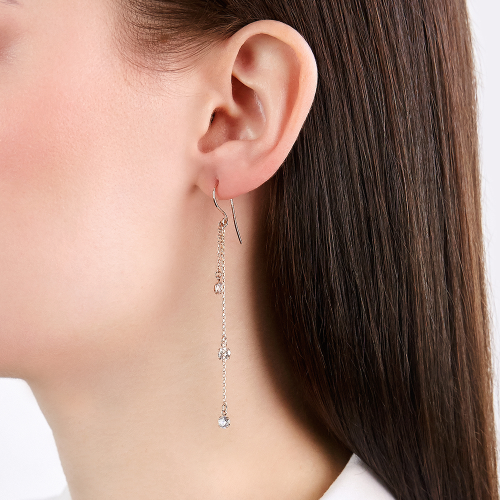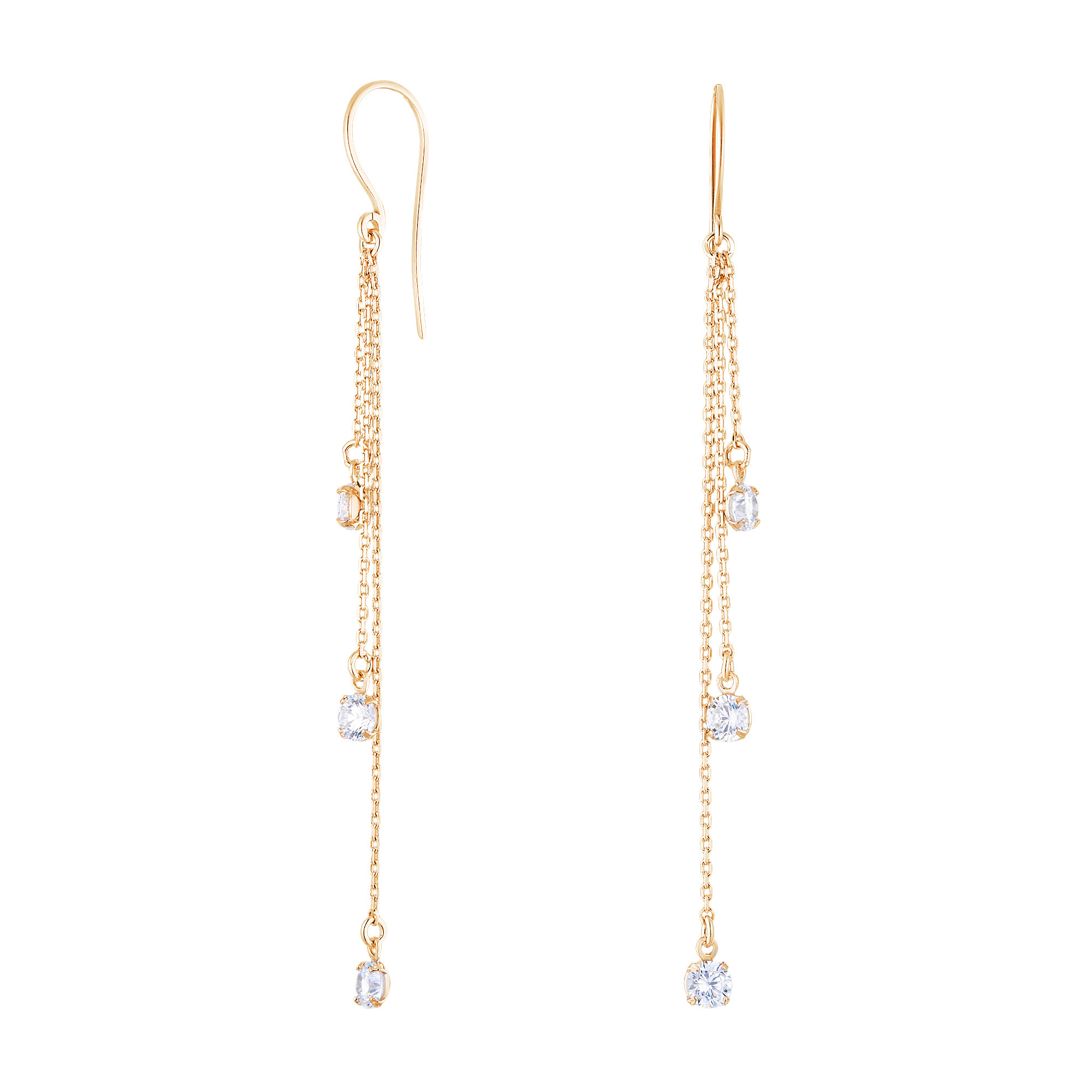 Ювелир Карат Серьги серебряные длинные цепочки с фианитами, серебро 925