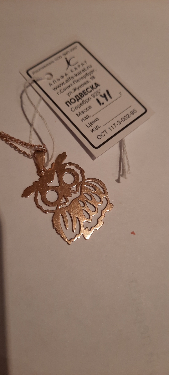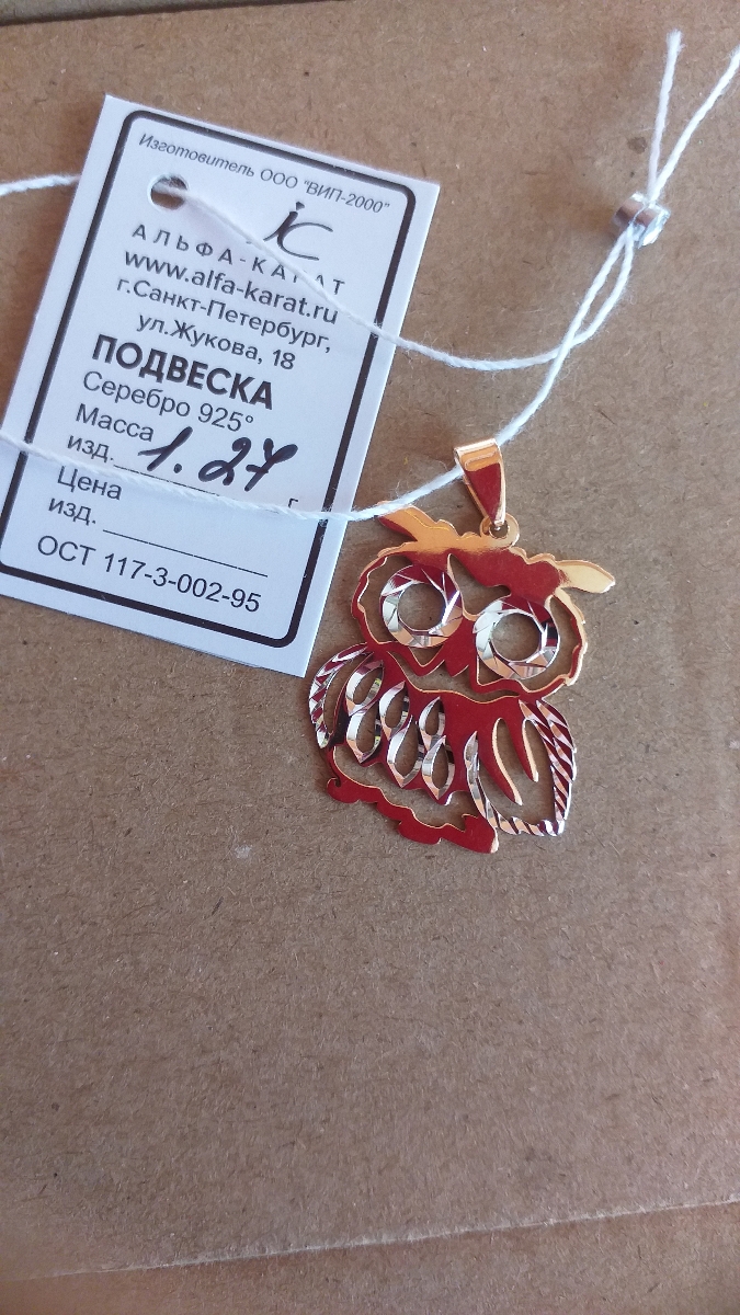Ювелир Карат Подвеска 2033644/9 Сова серебряная