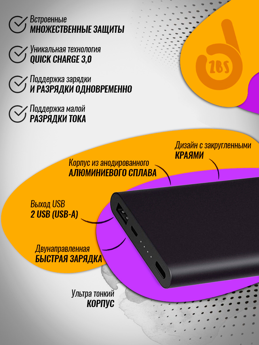 Повербанк / Powerbank / Внешний аккумулятор ZBS Power Bank 2, black / Повербанк 10000mah