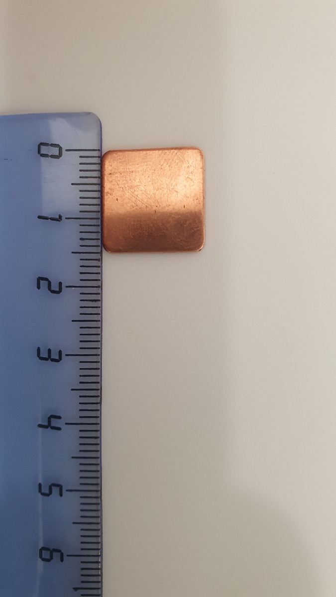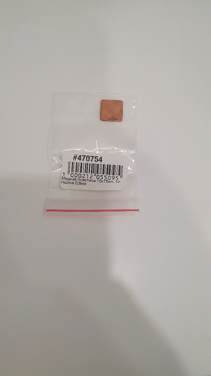 Медная теплопроводящая пластина (радиатор) для плат электроники 15х15мм, толщина 0,8мм
