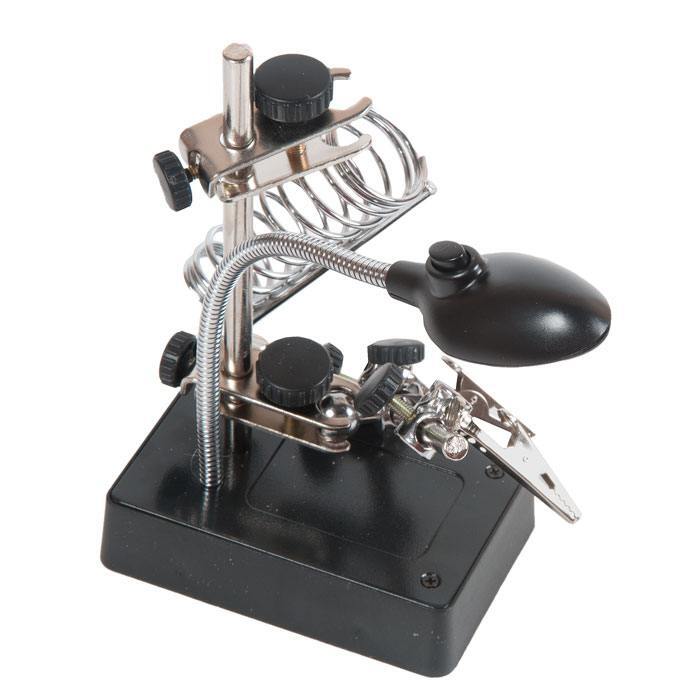 Держатель для пайки с подсветкой и подставкой под паяльник (мятая упаковка)