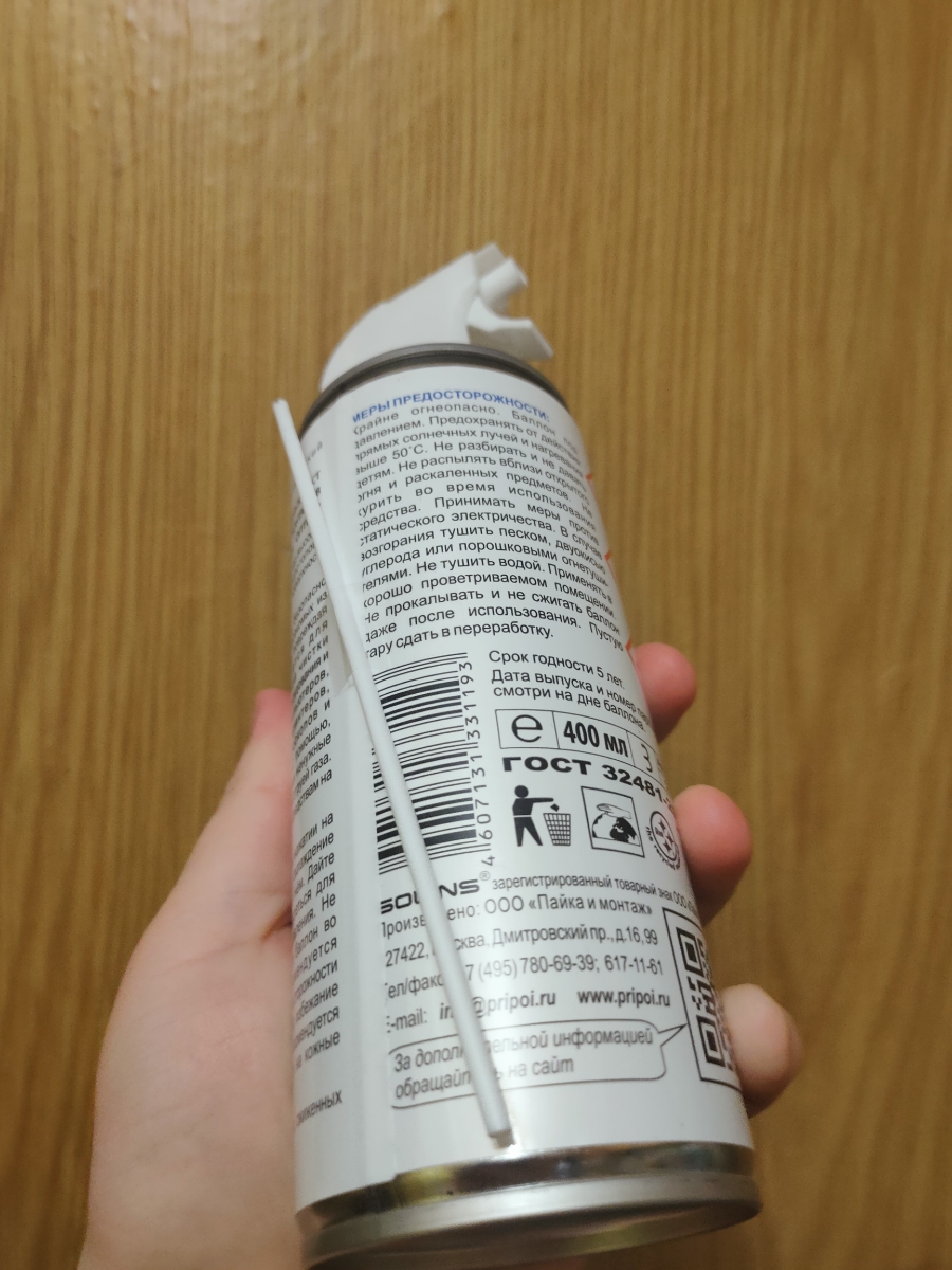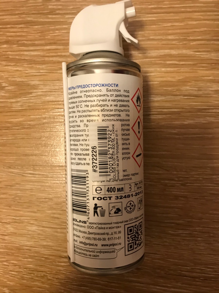 сжатый воздух для продувки от пыли DUSTER Solins объем 400мл