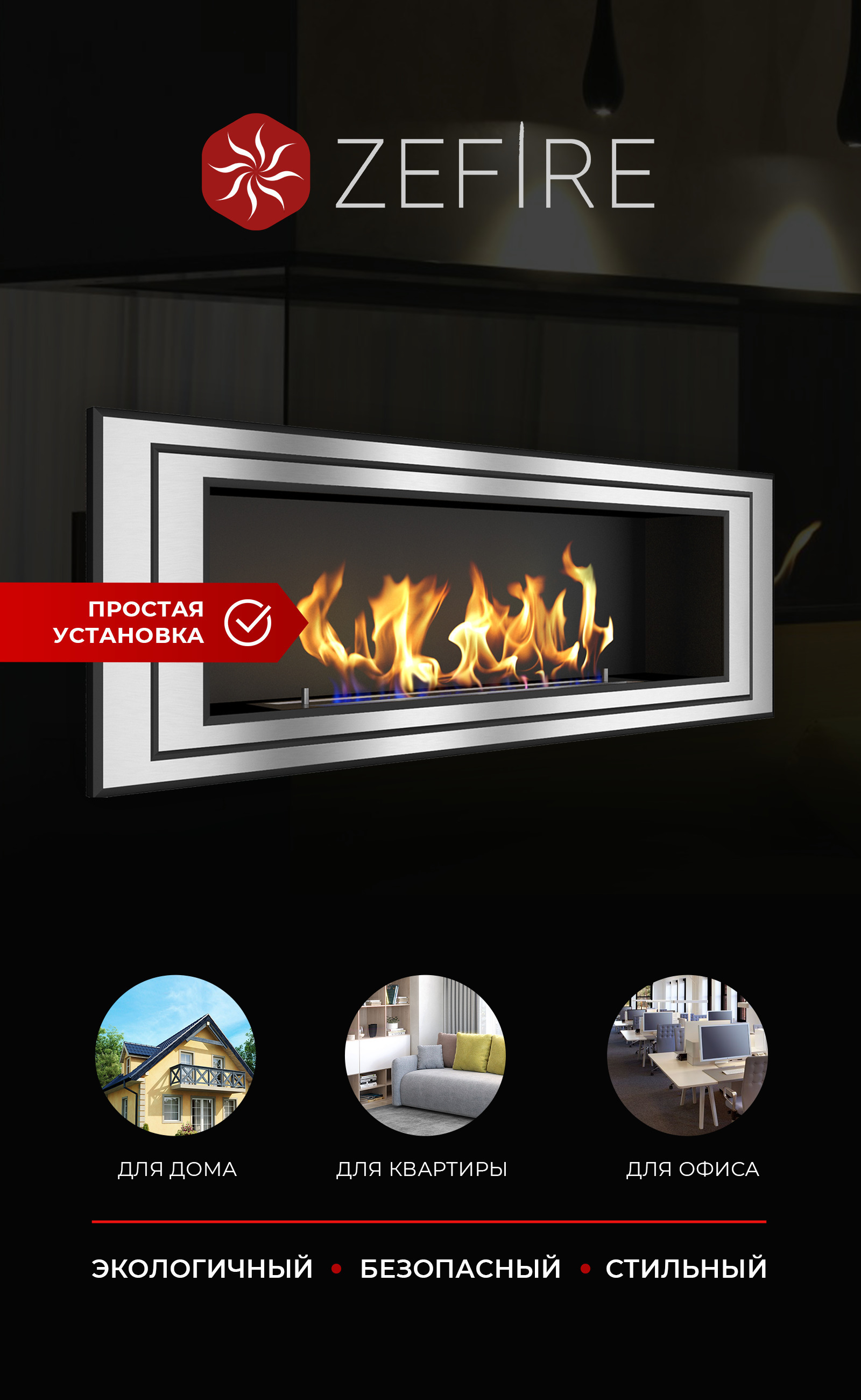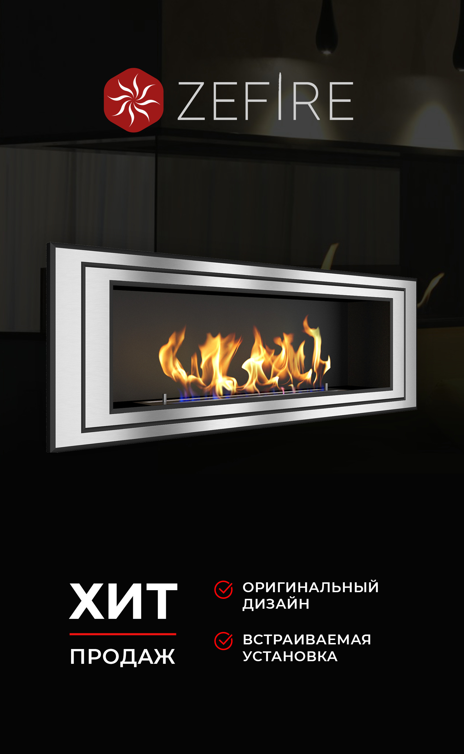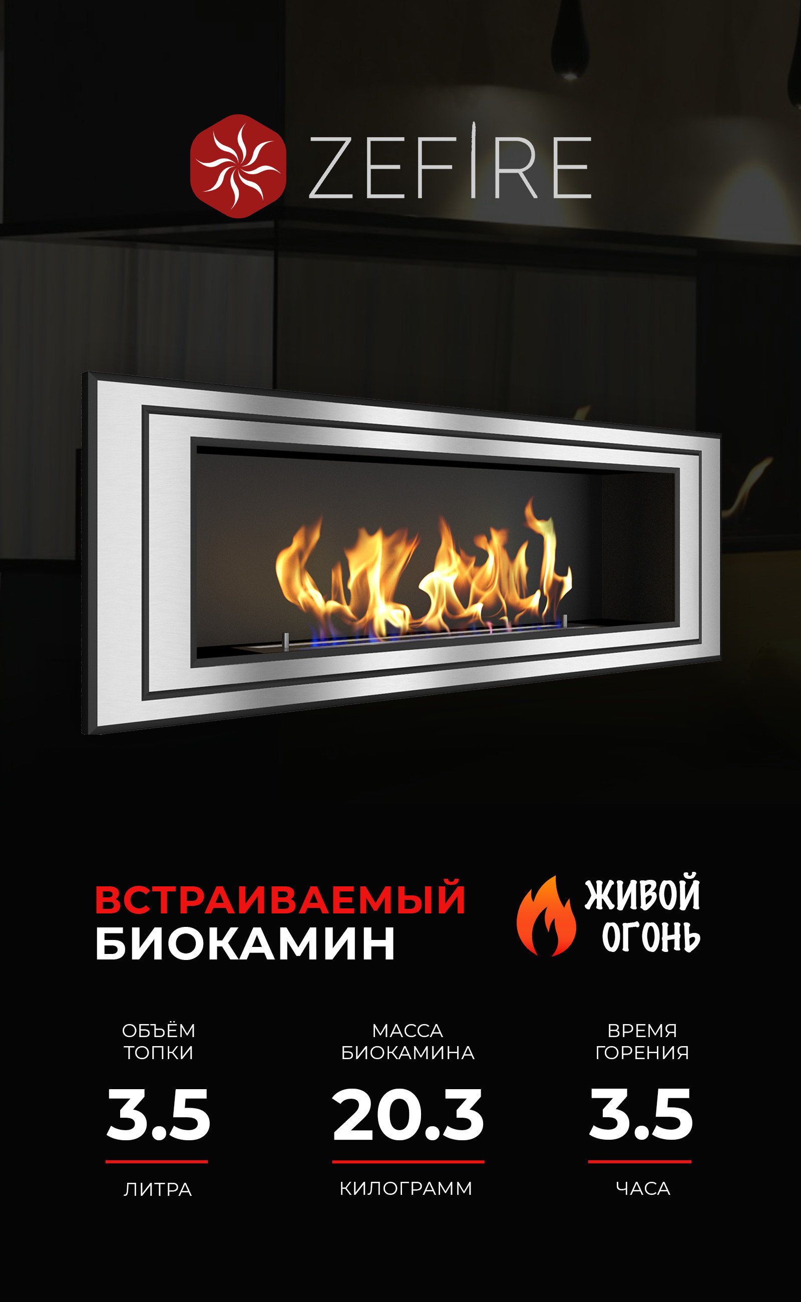 Биокамин ZeFire Каминная вставка Standart зеркальная