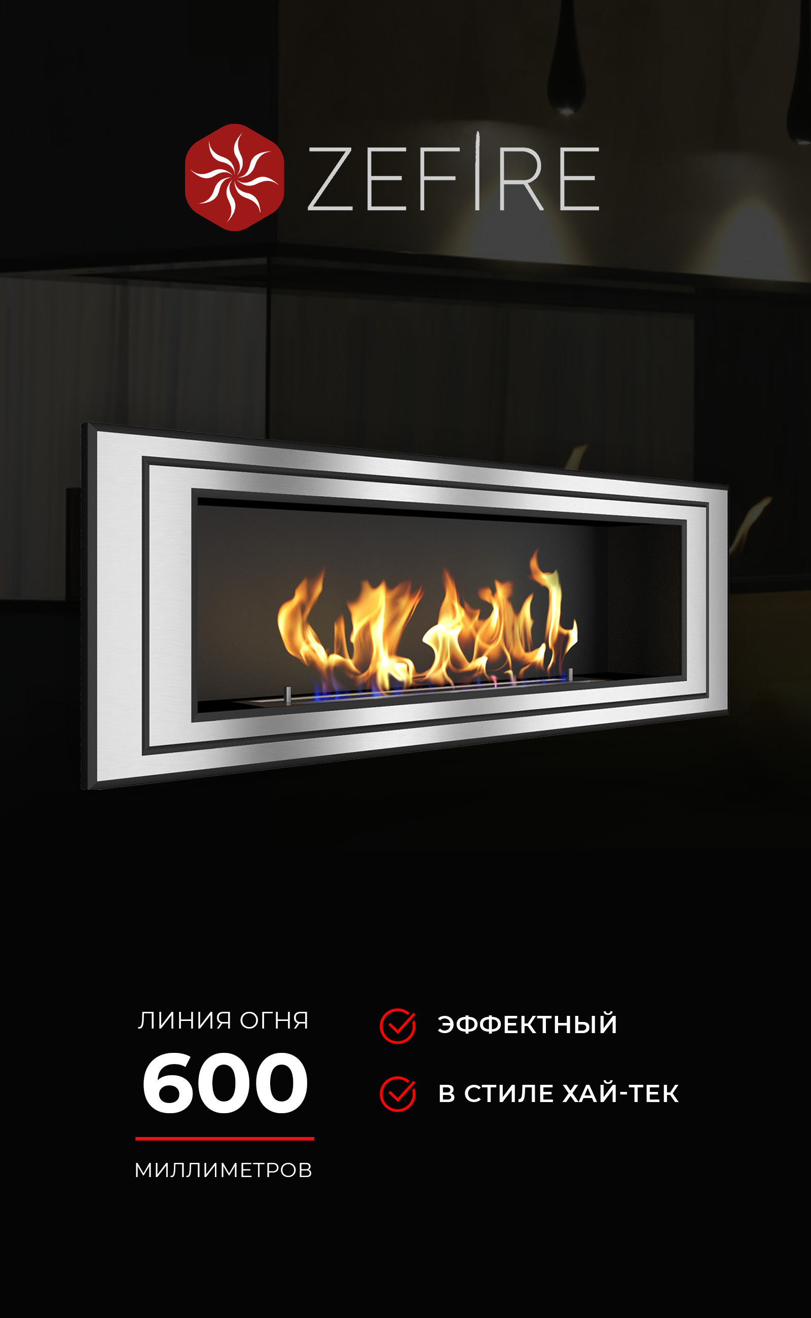 Очаг Zefire Встраиваемый торцевой очаг Standart 600