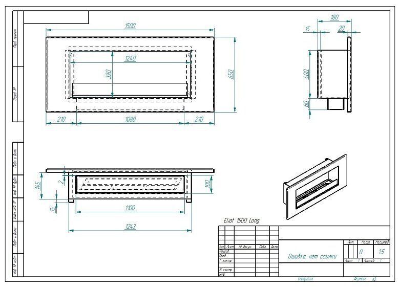 Биокамин ZeFire Прямоугольный контейнер 700, Встроенная установка