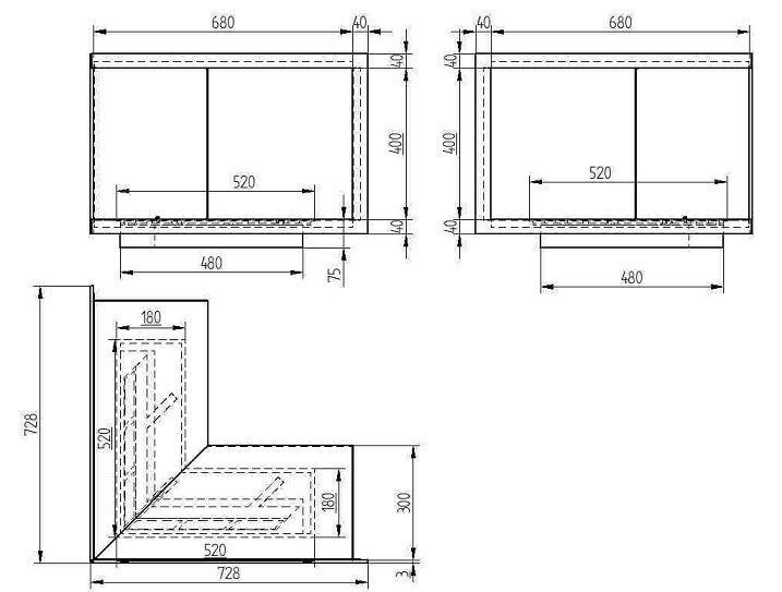 Очаг Zefire Встраиваемый угловой очаг Standart 800