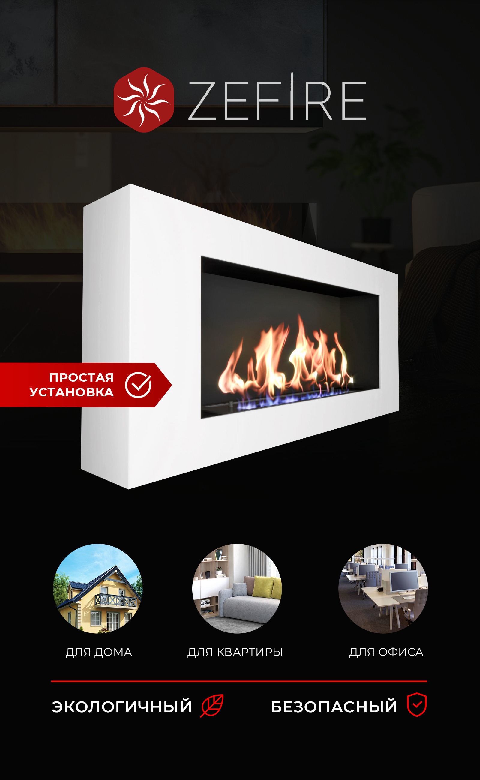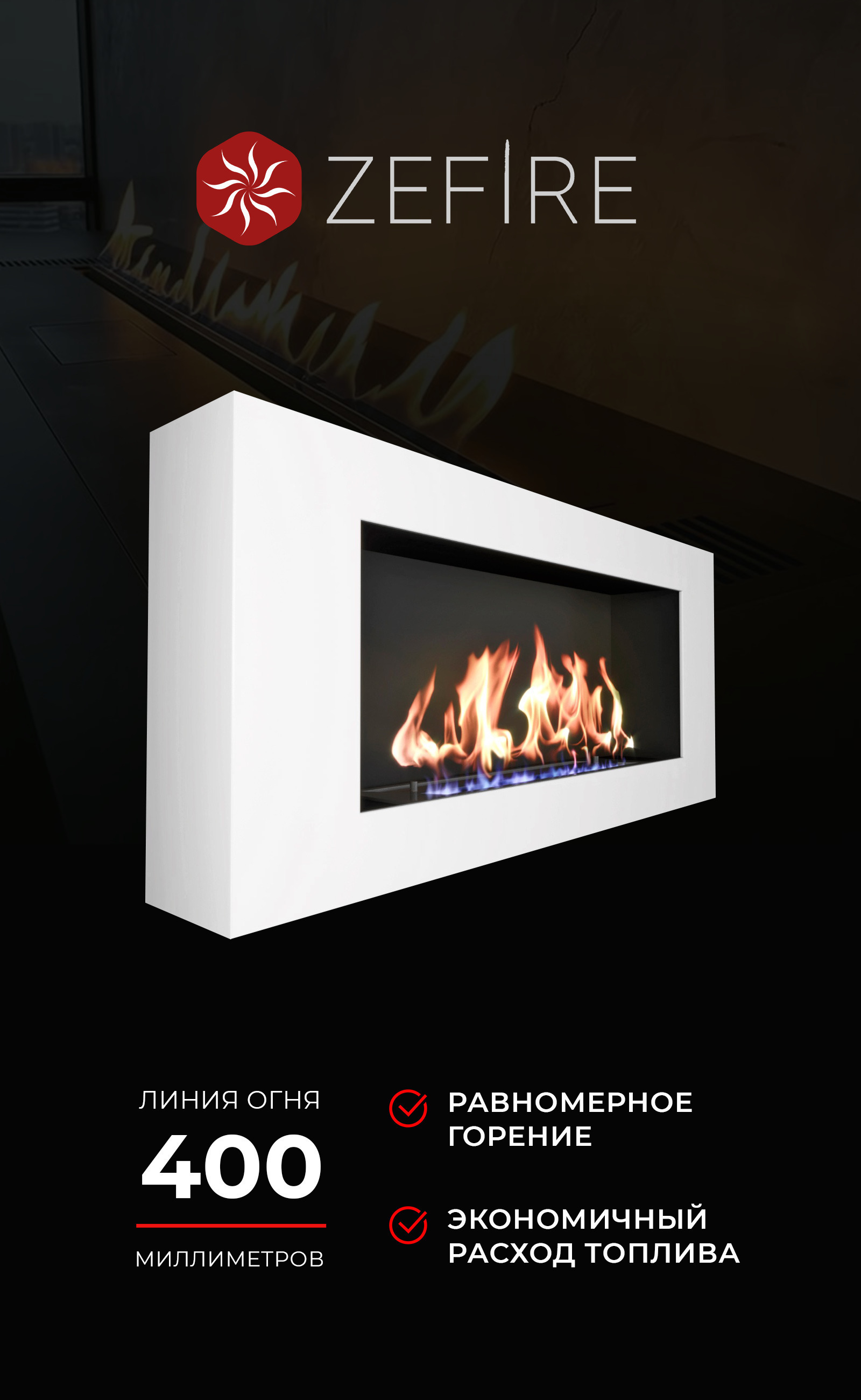 Биокамин ZeFire Orion 900 с белой рамкой, Настенная установка