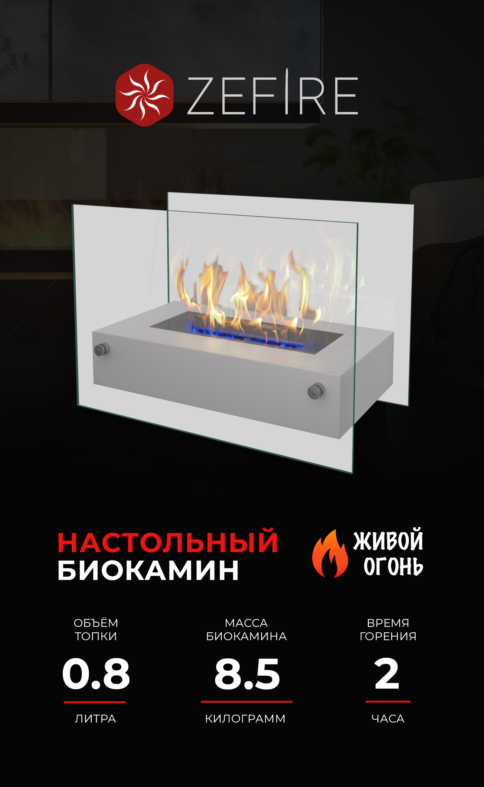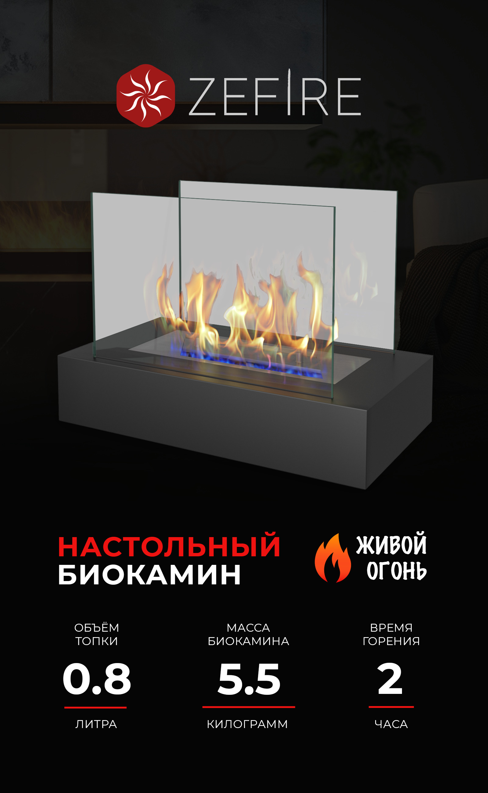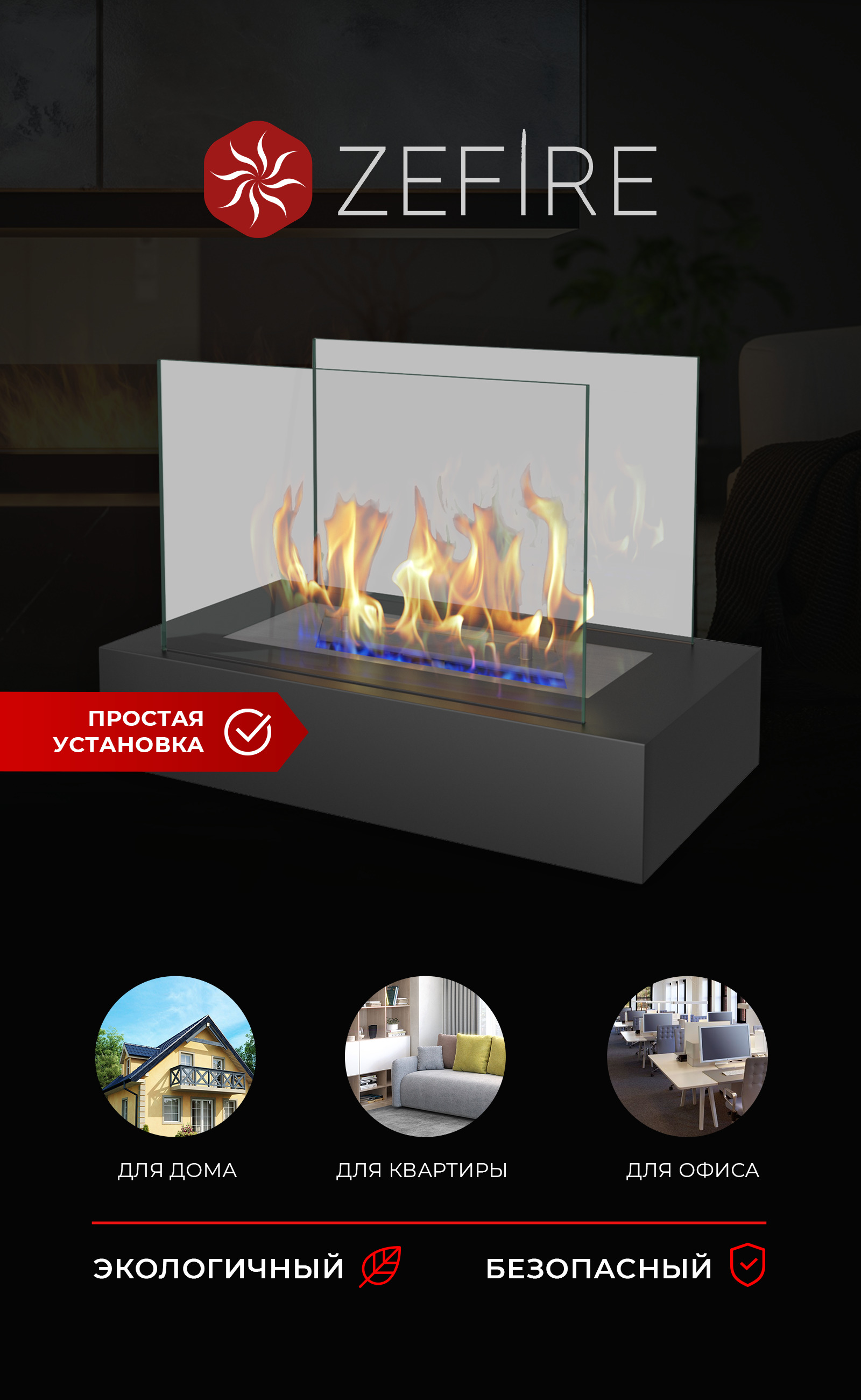 Биокамин ZeFire Iris mini, Настольная, Напольная установка