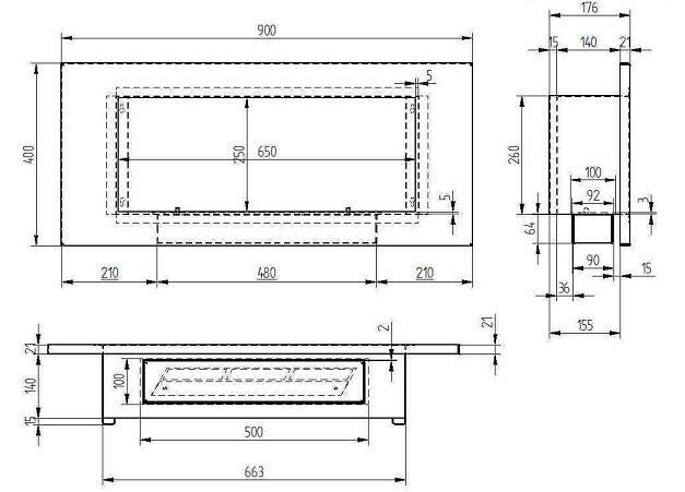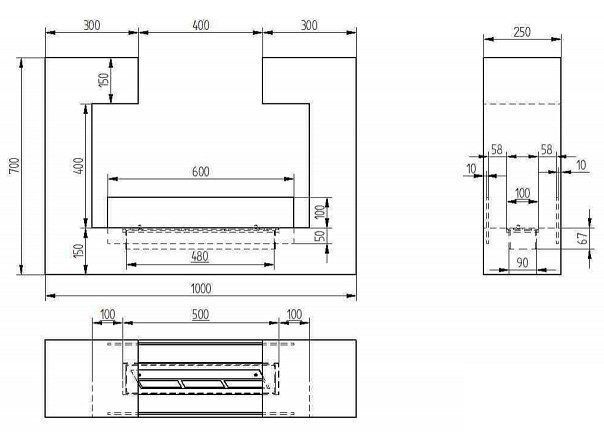 Биокамин ZeFire Flagman 1000 шлифованный, Встроенная установка