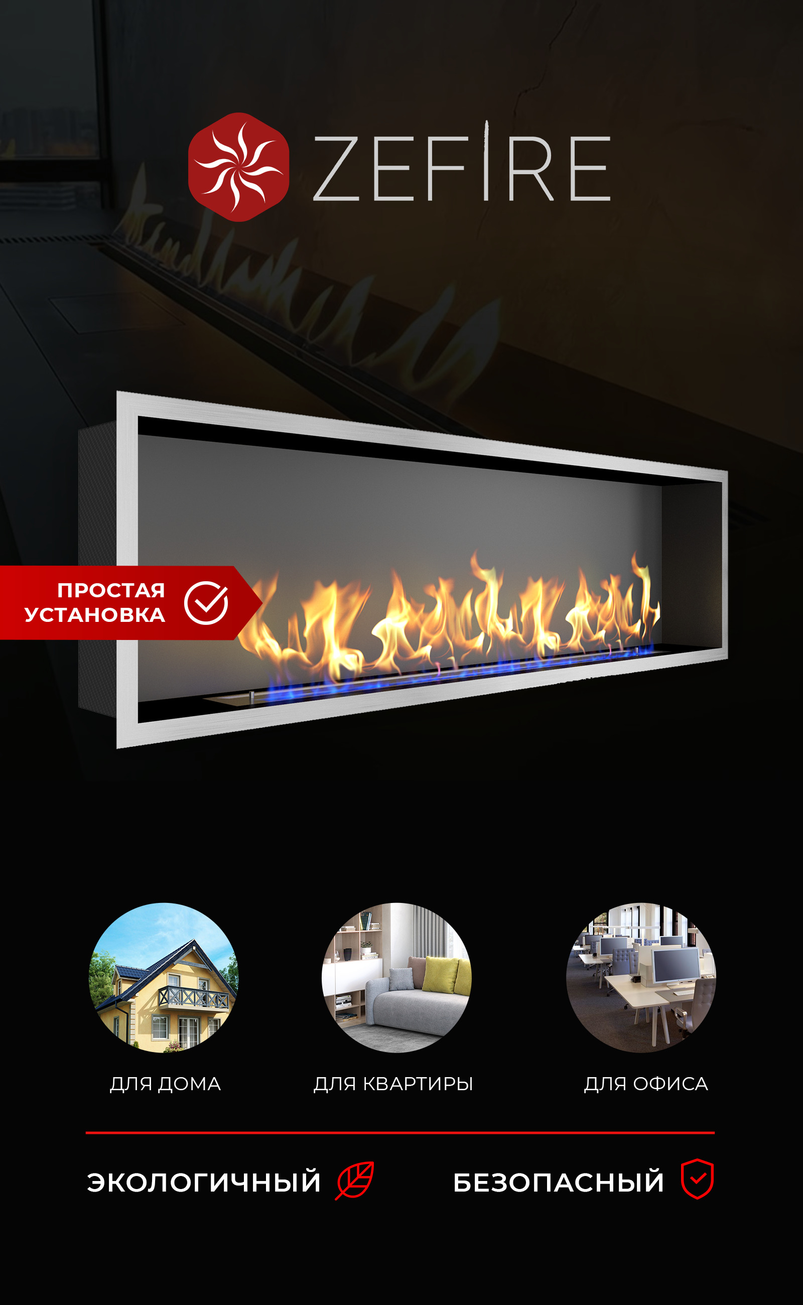 Биокамин ZeFire Каминная вставка Standart зеркальная