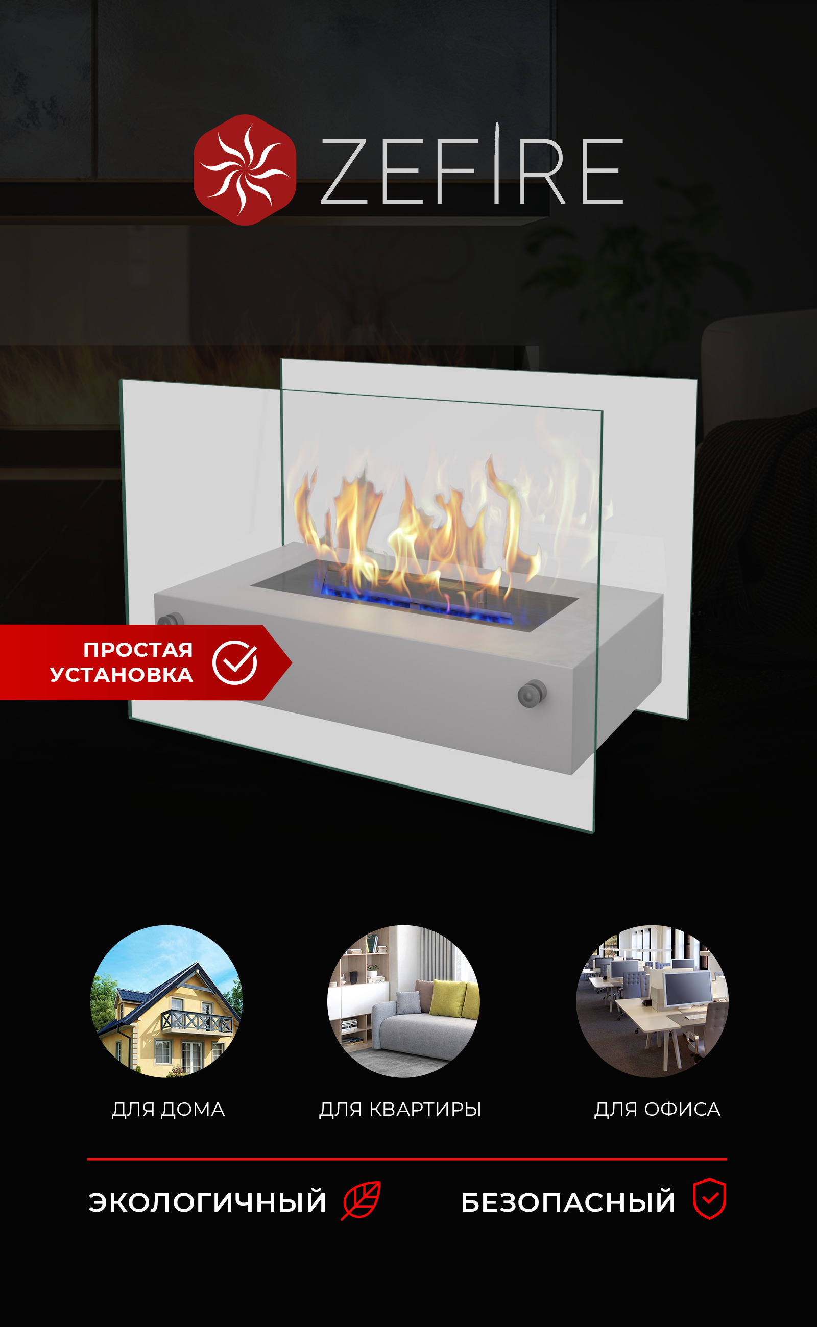 Биокамин ZeFire Elliot 900 c белой рамкой