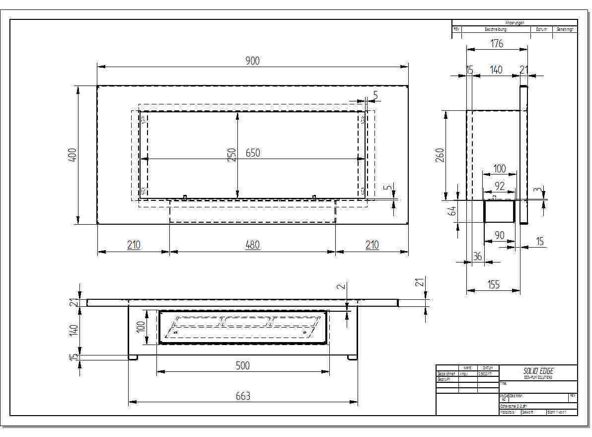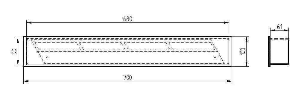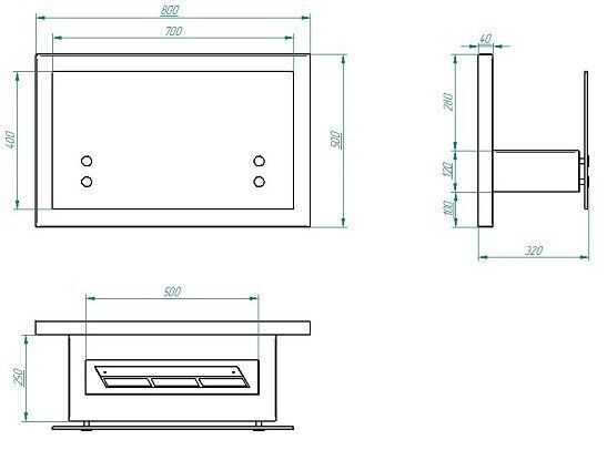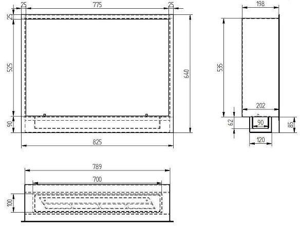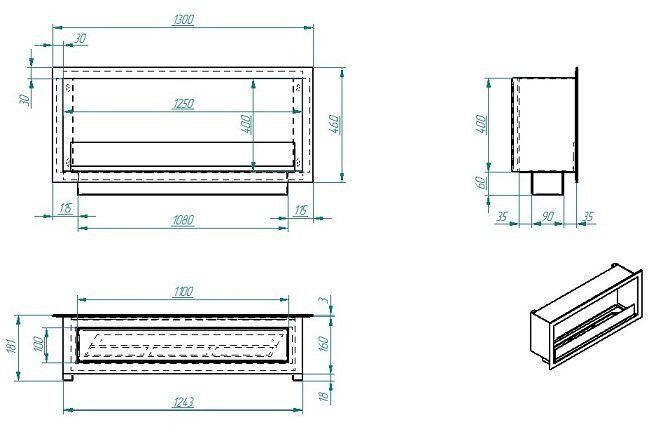 Биокамин ZeFire Прямоугольный контейнер 700, Встроенная установка