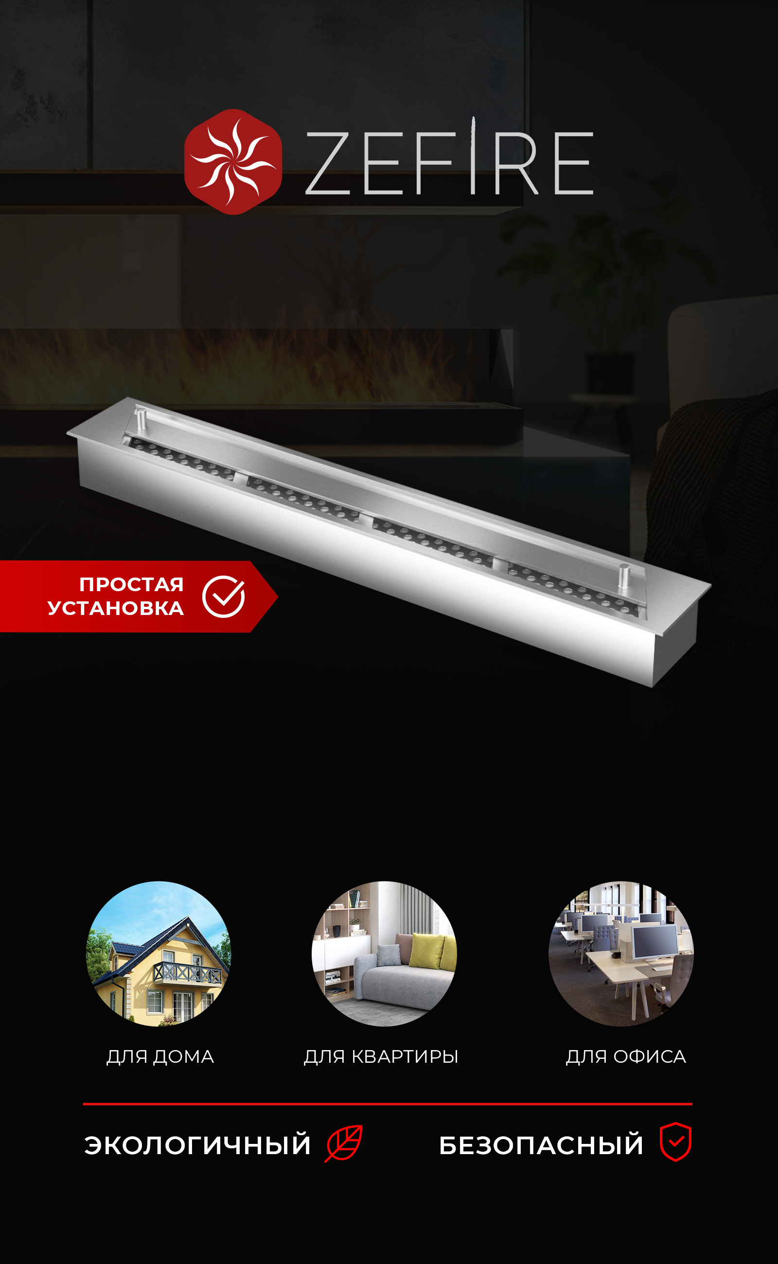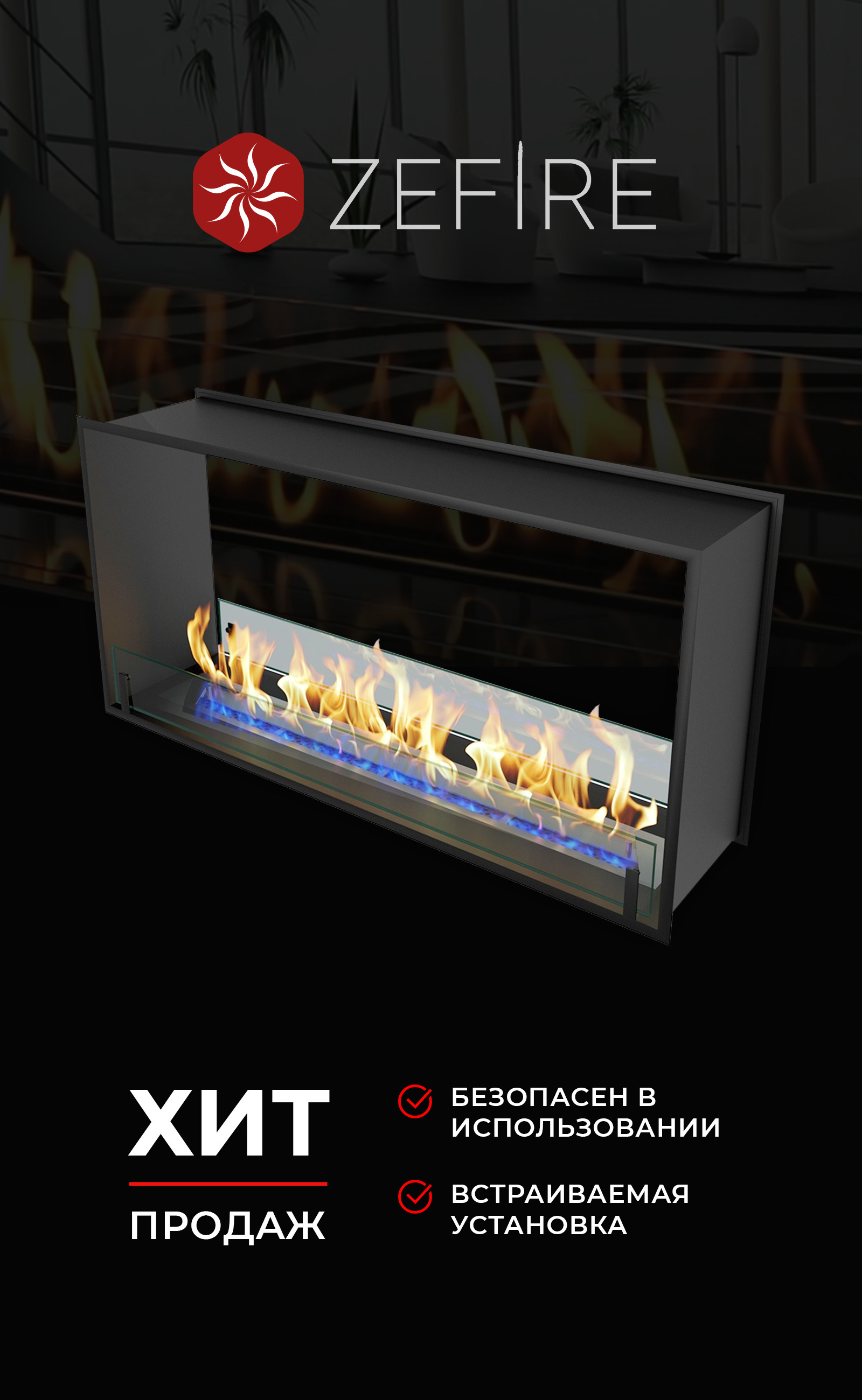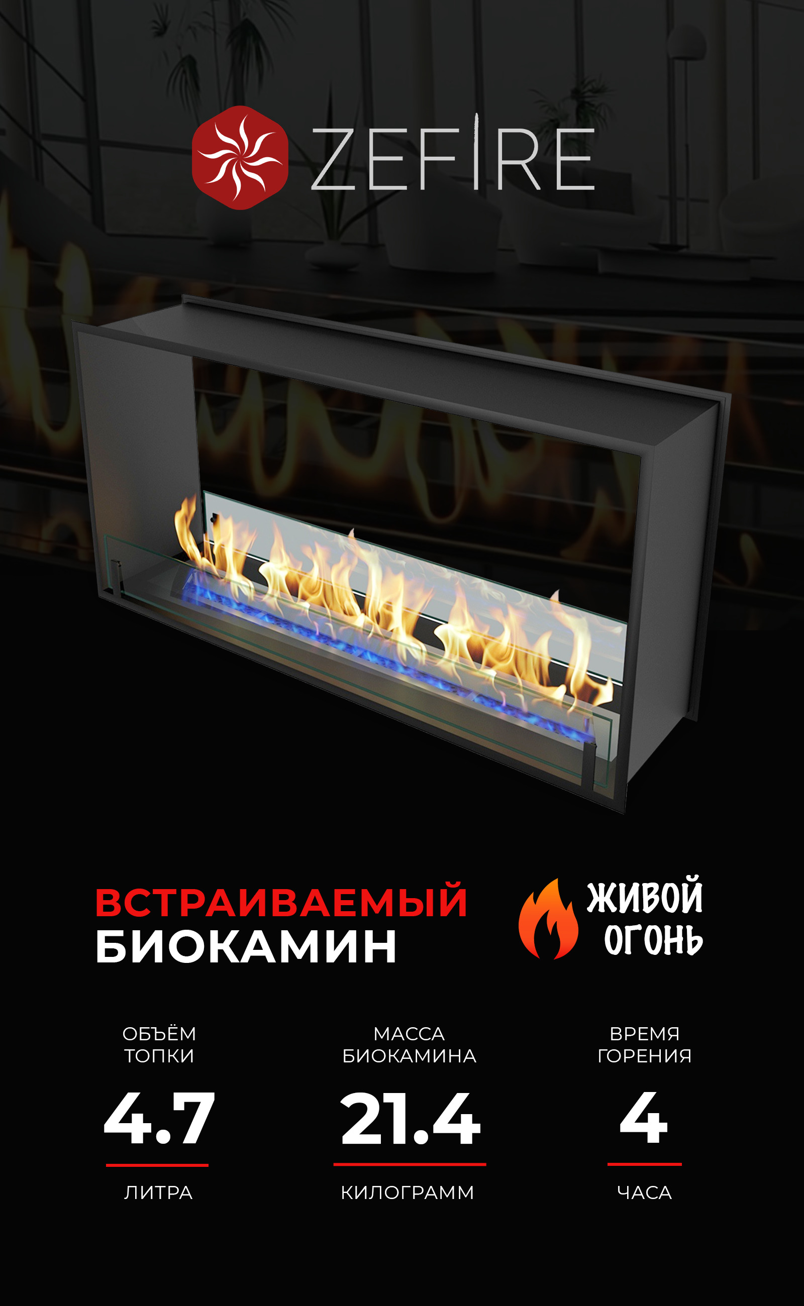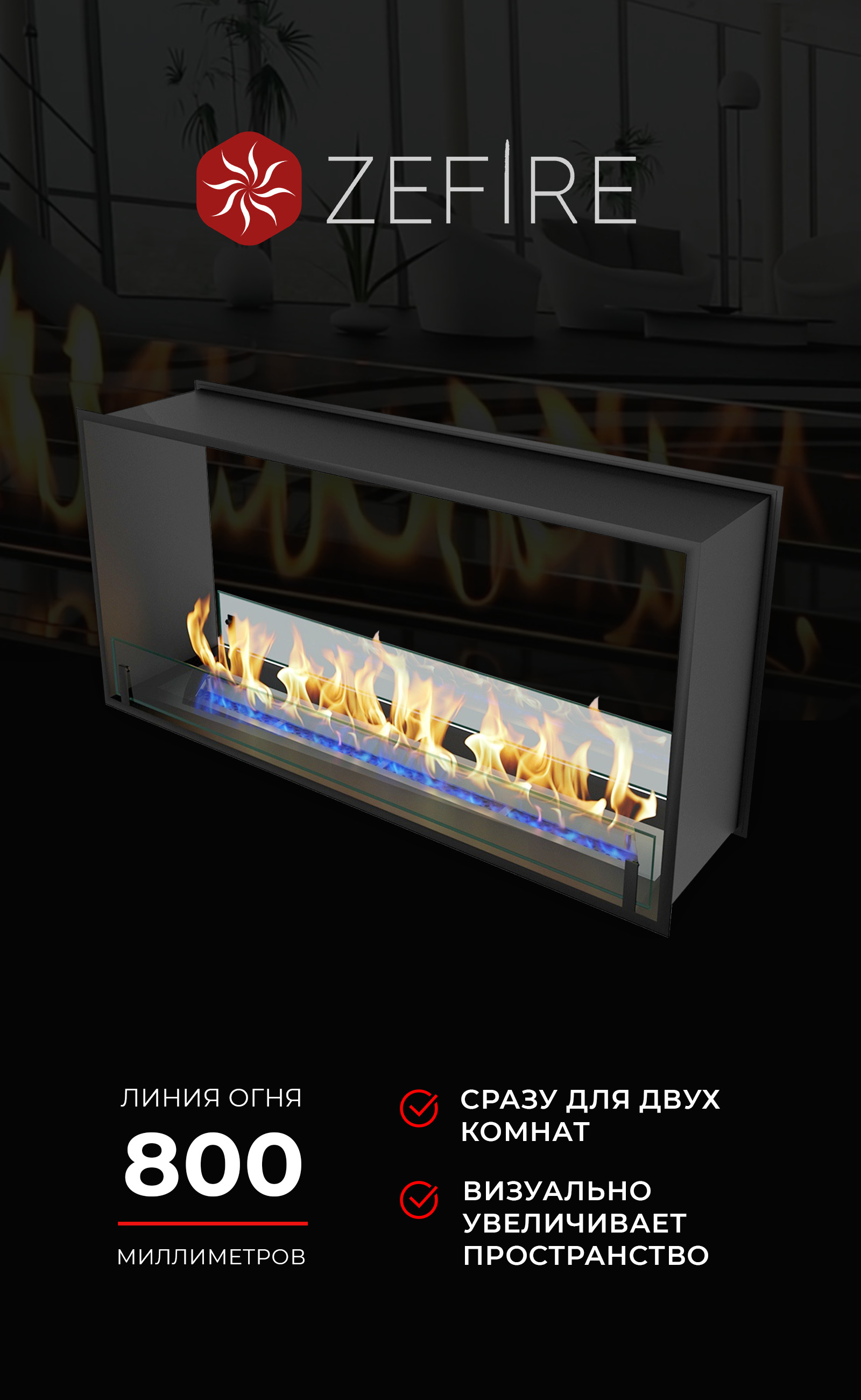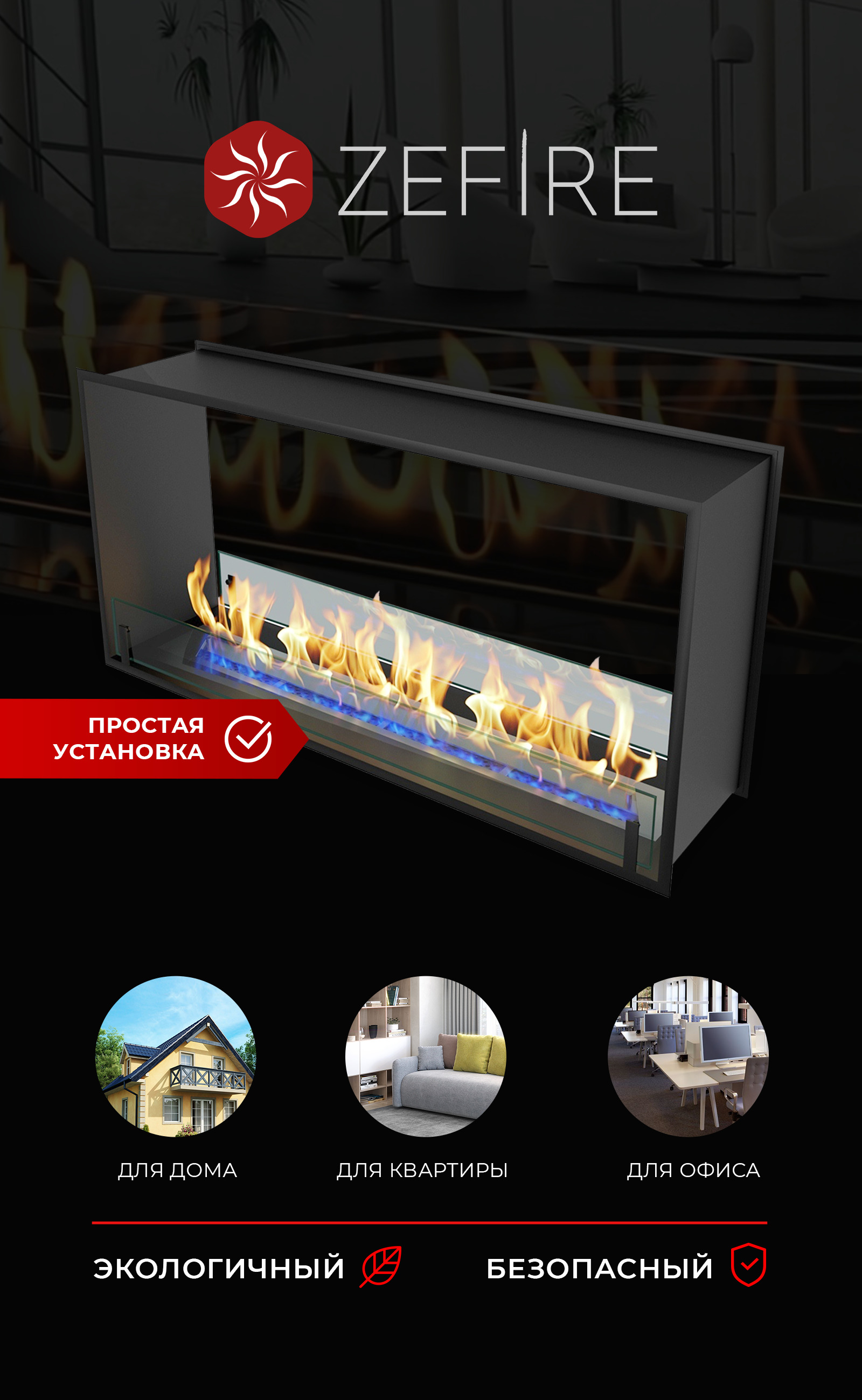 Биокамин ZeFire Сквозной Standart 1100, Встроенная установка
