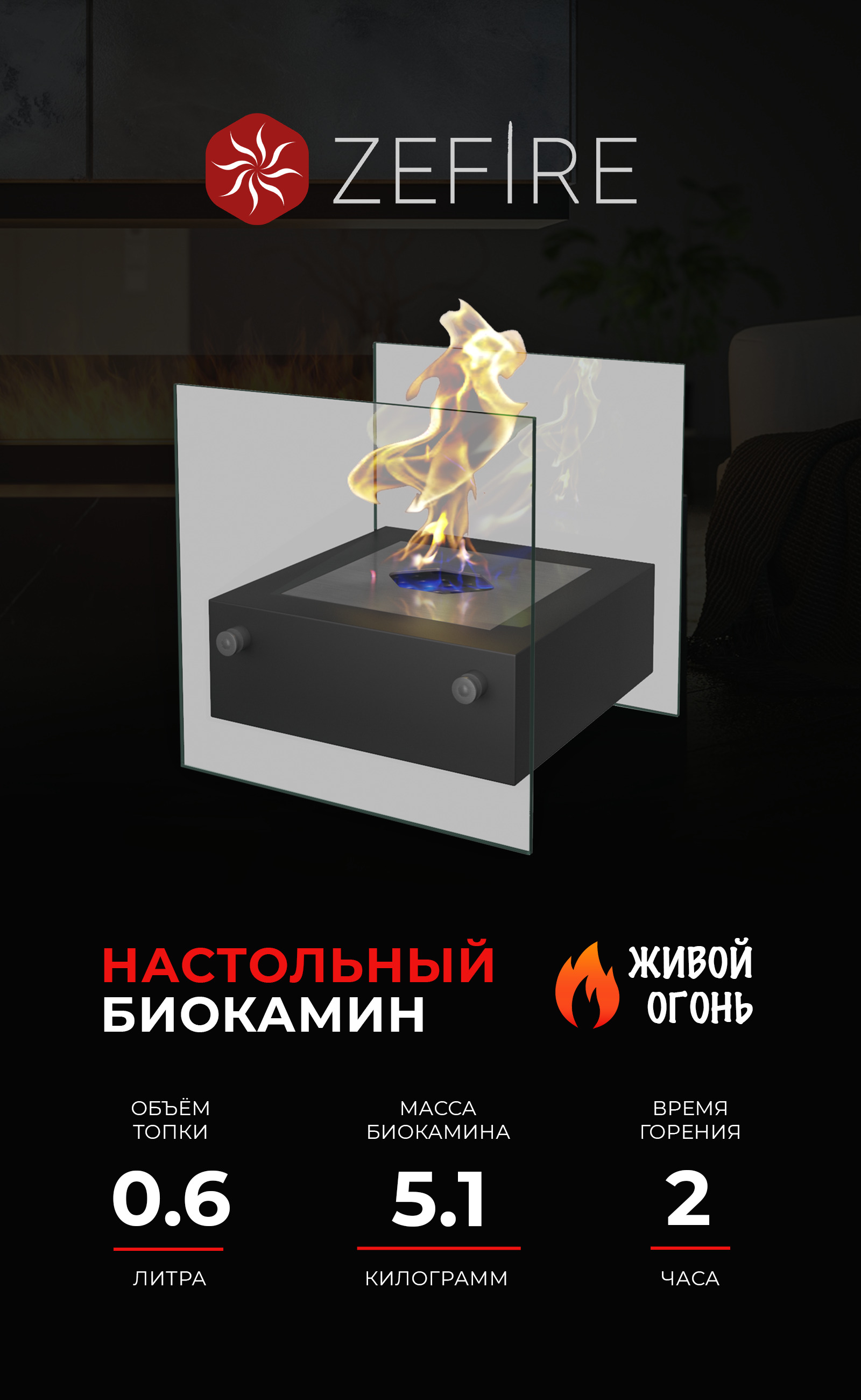 Биокамин ZeFire Irirs средний темный, Напольная, Настольная установка