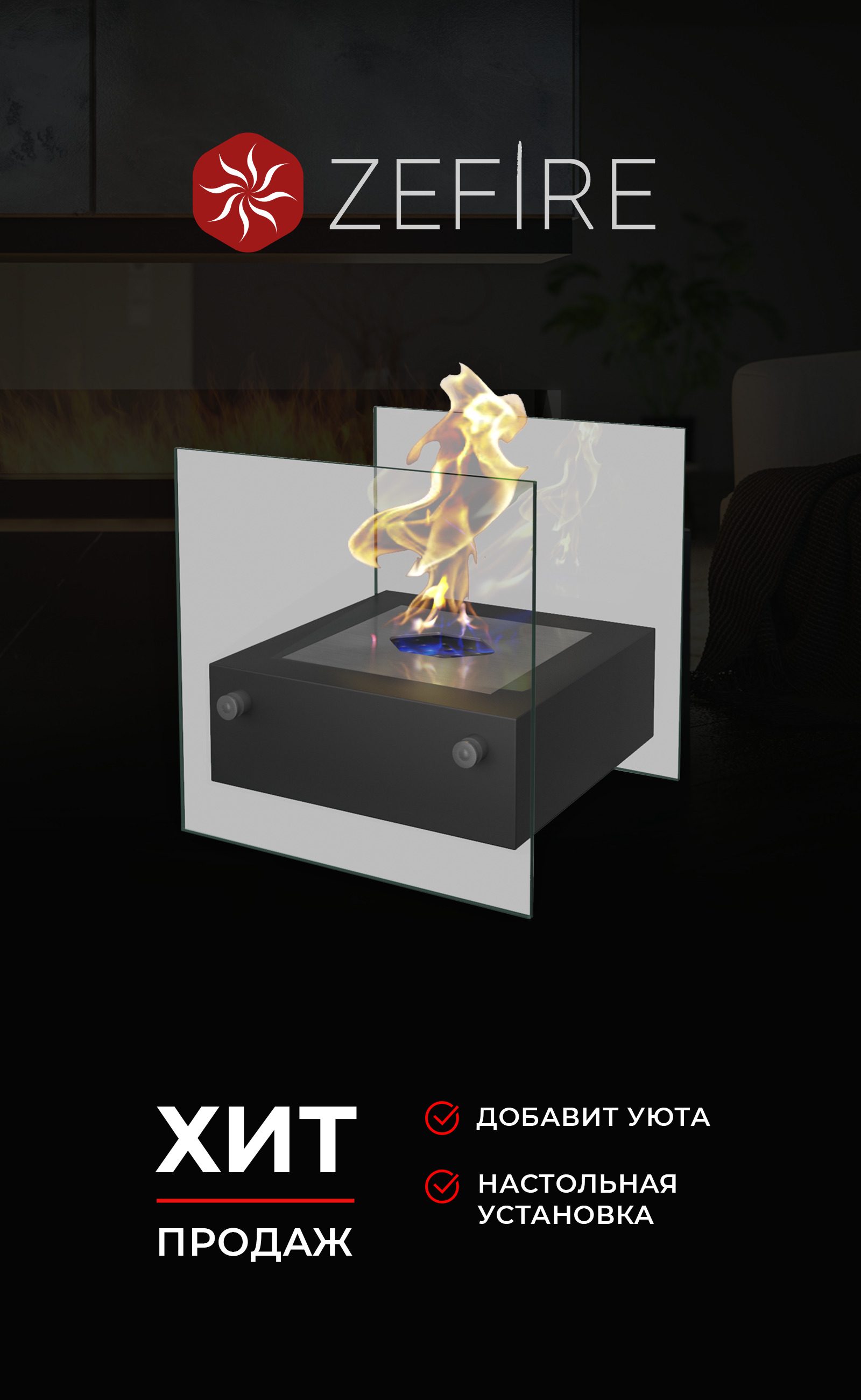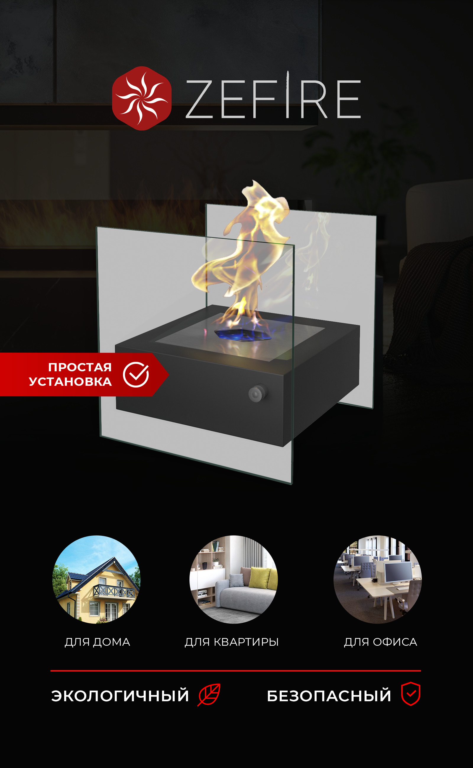 Биокамин ZeFire Стекло декоративное для биокаминов Sirius 1500, Elliot 1500 и Flagman 1300