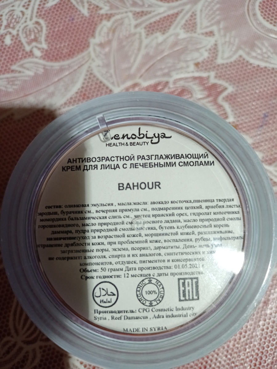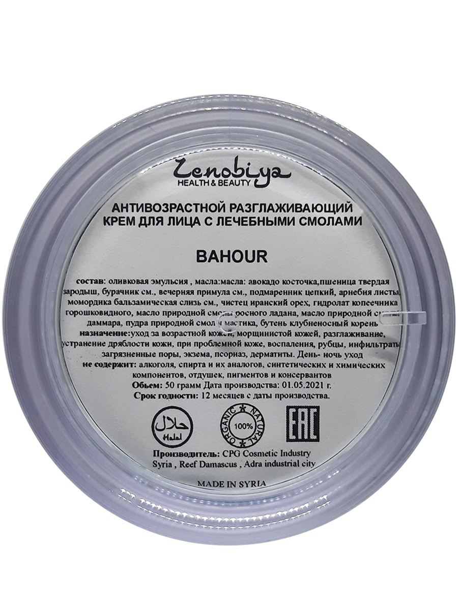 Антивозрастной разглаживающий крем для лица с тремя видами ароматных лечебных смол BAHOUR, 50гр
