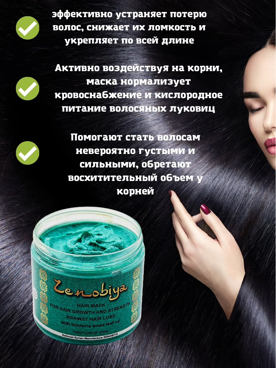 Маска с маслом листьев и мякотью усьмы против выпадения волос Zenobiya, 200гр