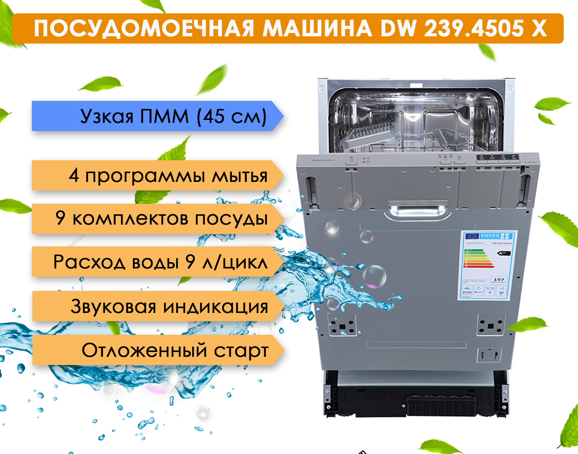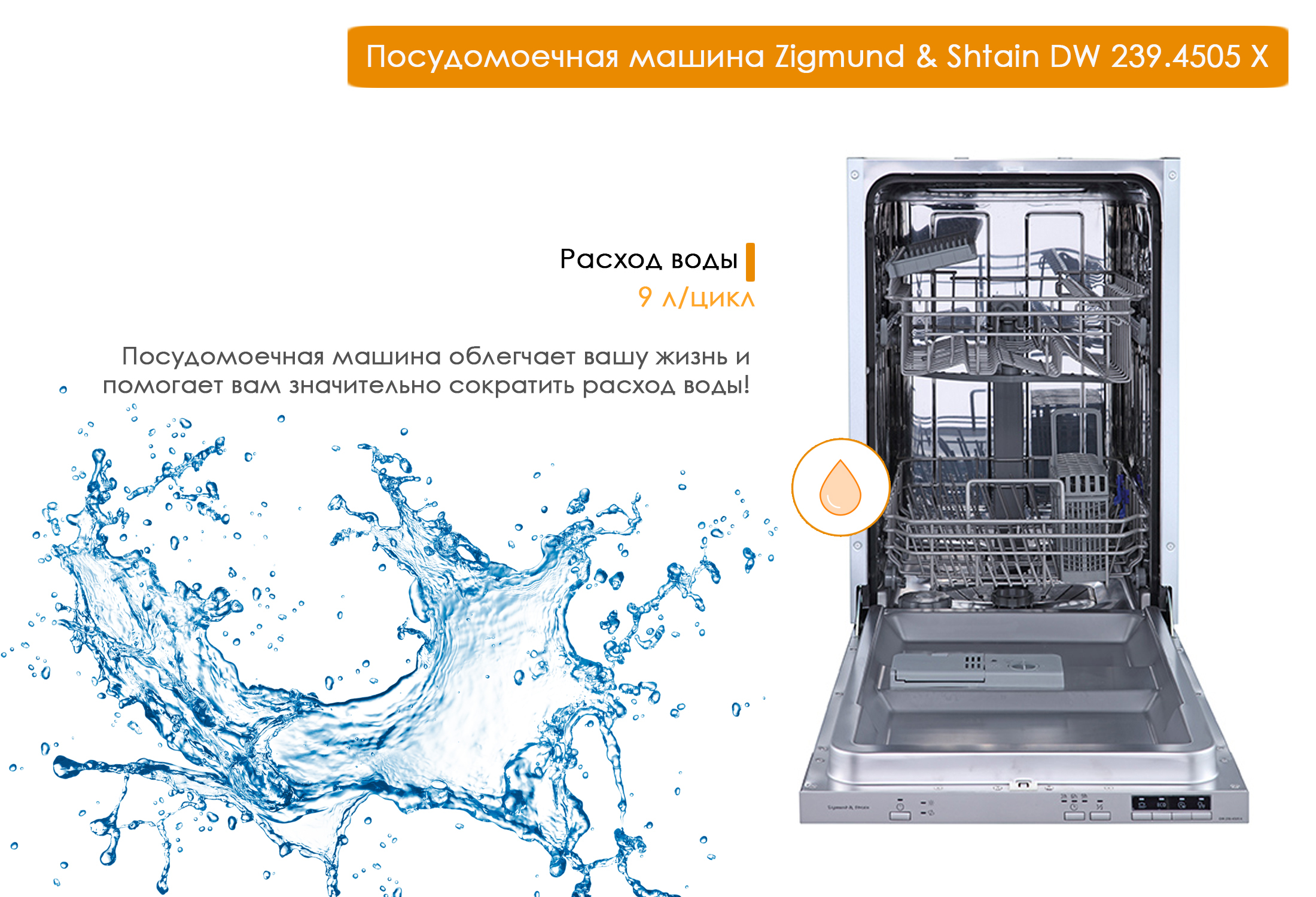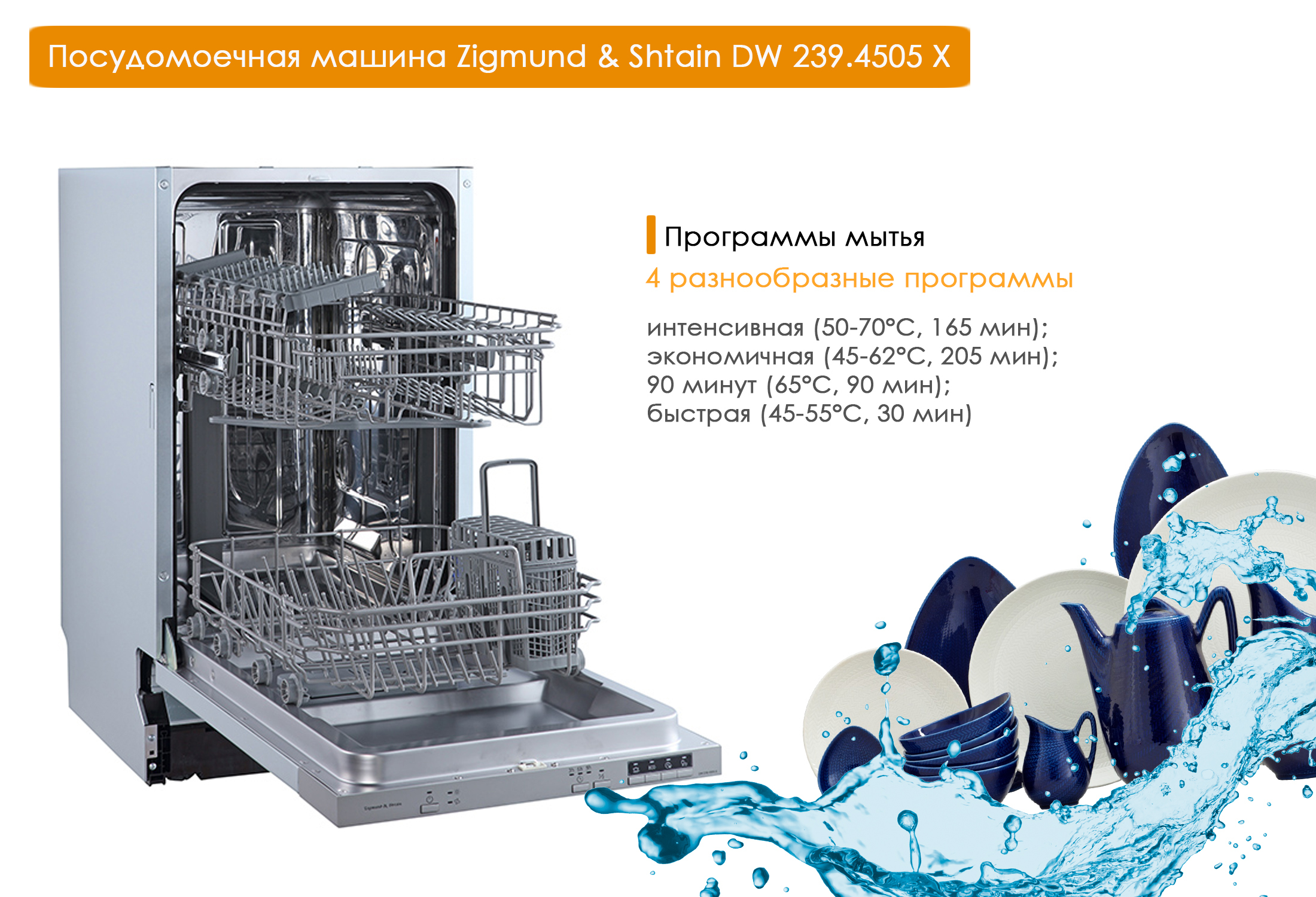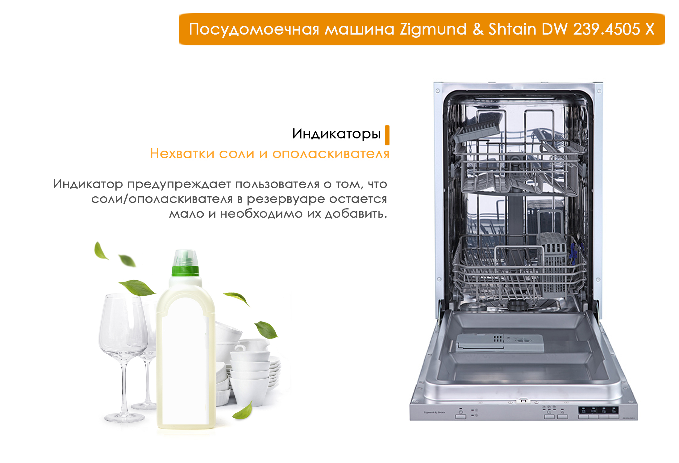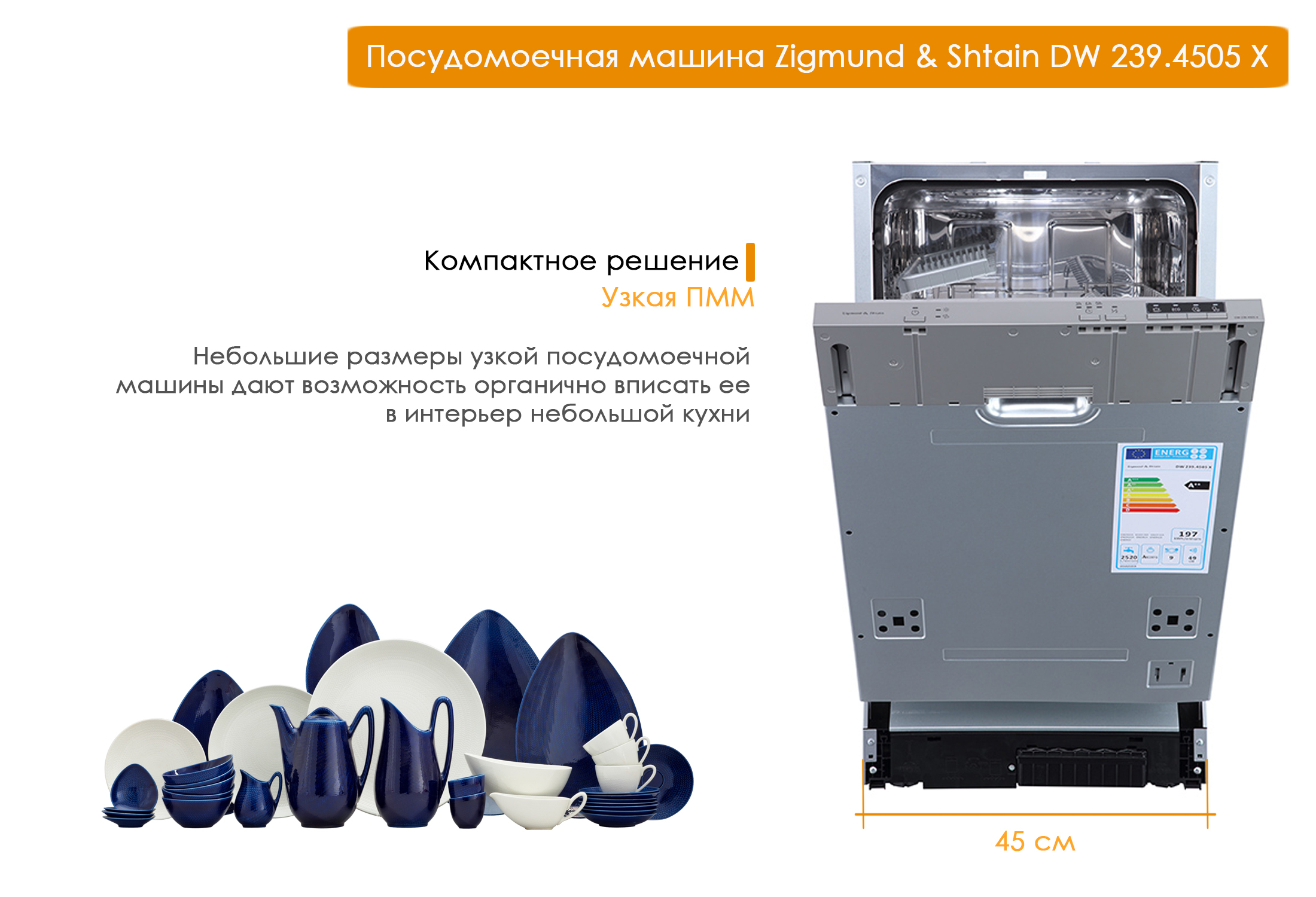Встраиваемая посудомоечная машина Zigmund & Shtain DW 239.4505 X, 45 см, серебристый