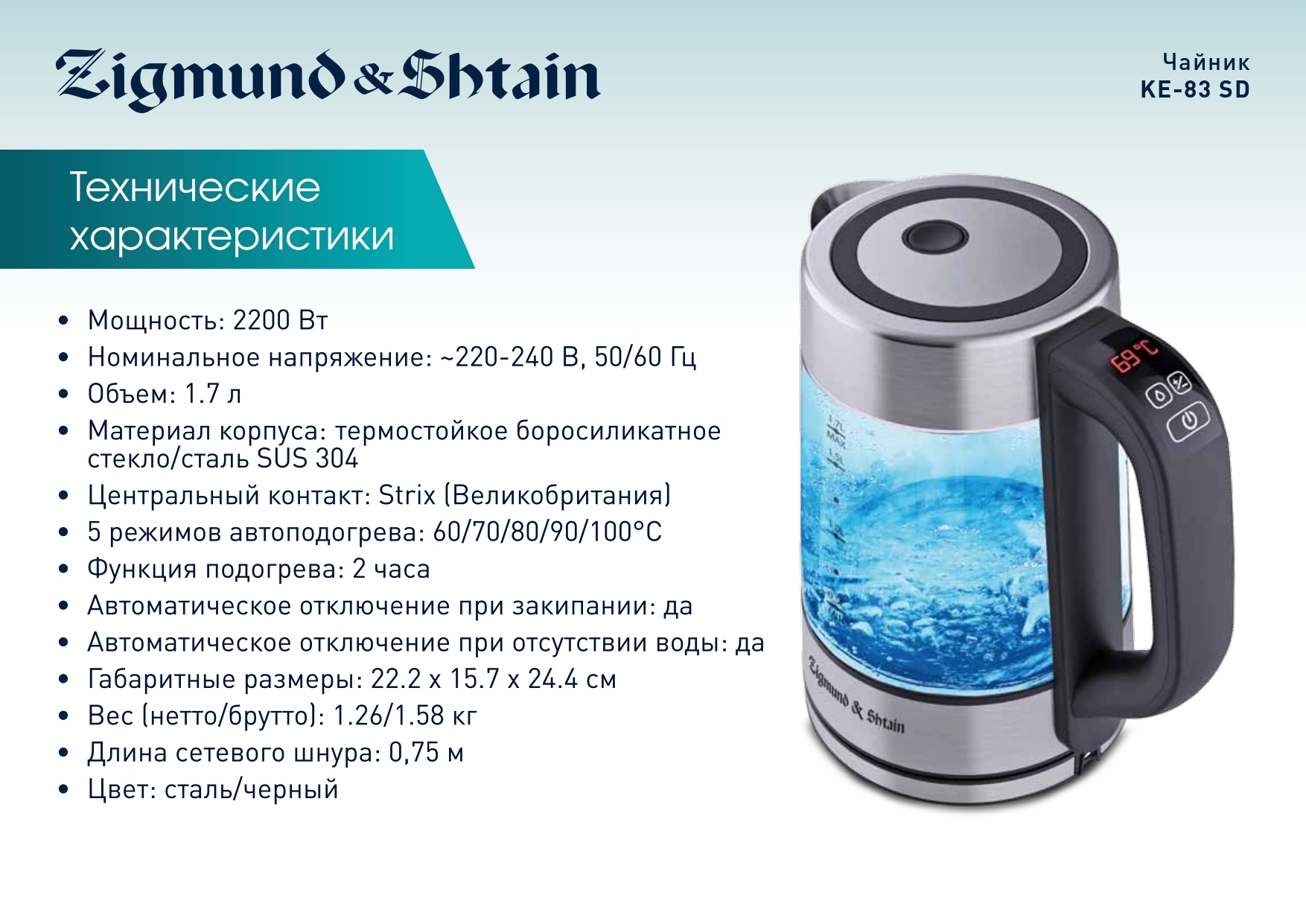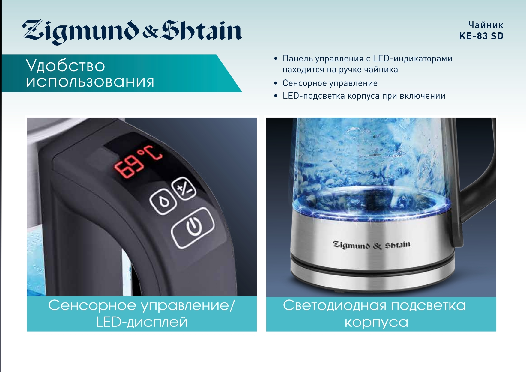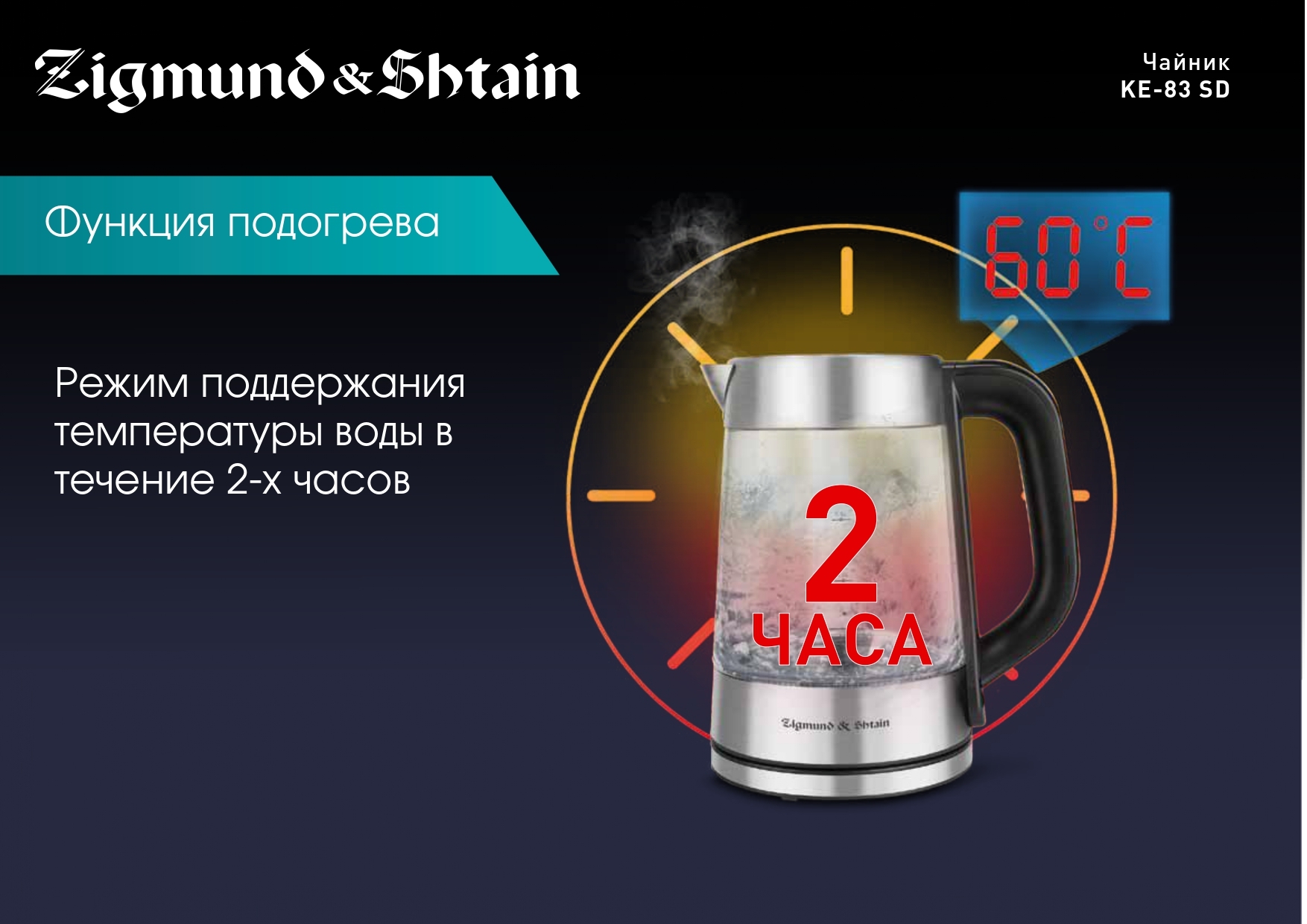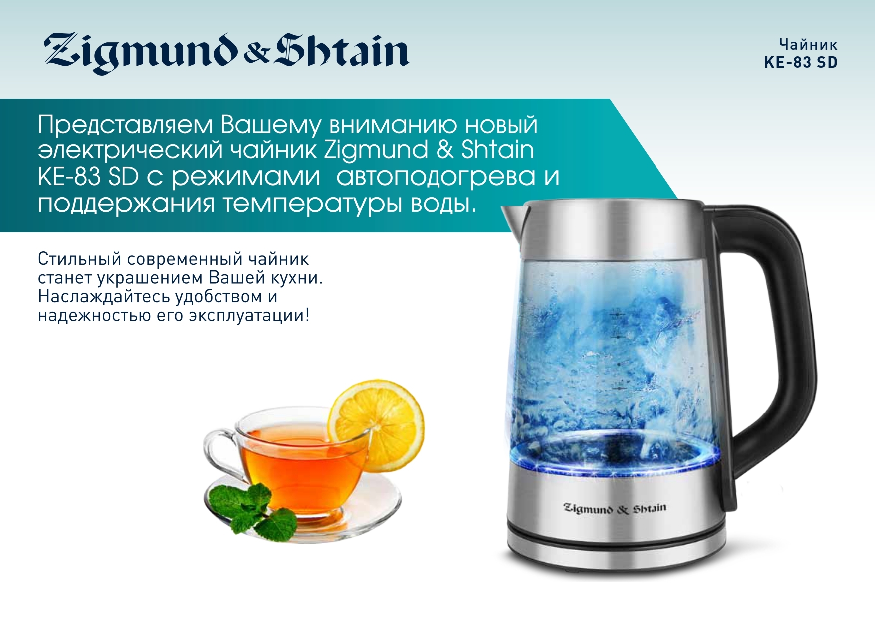 Электрический чайник Zigmund & Shtain KE-83 SD, серебристый, черный