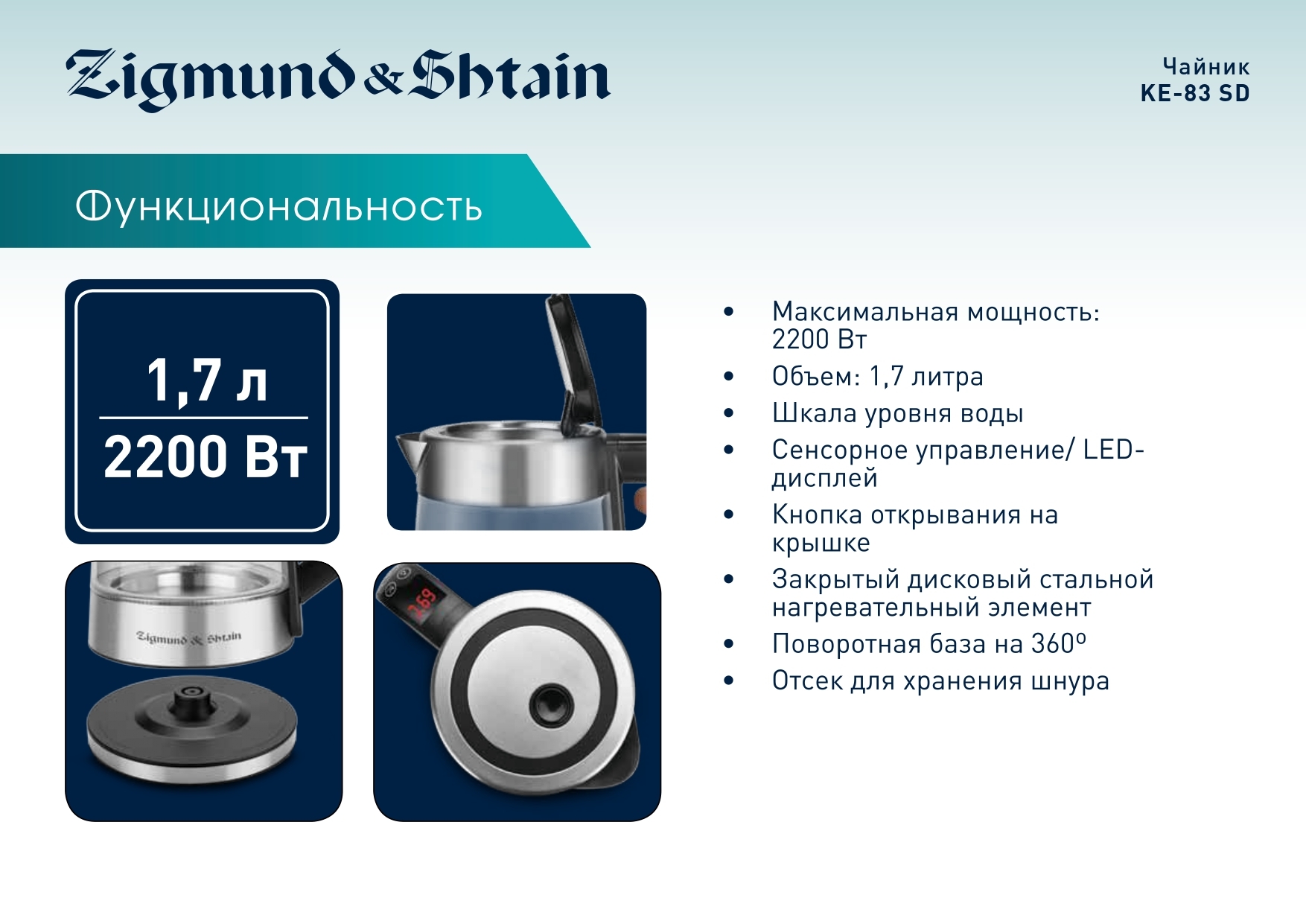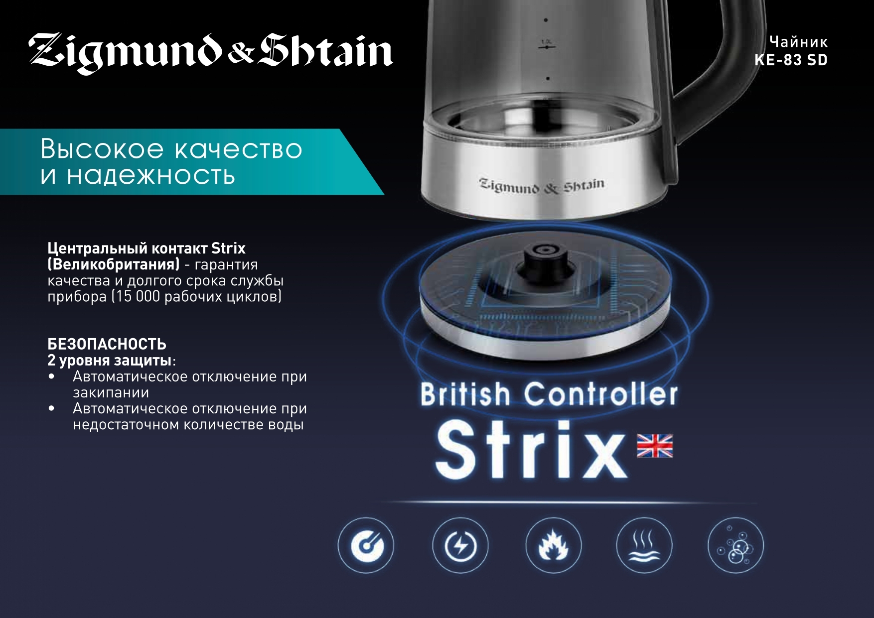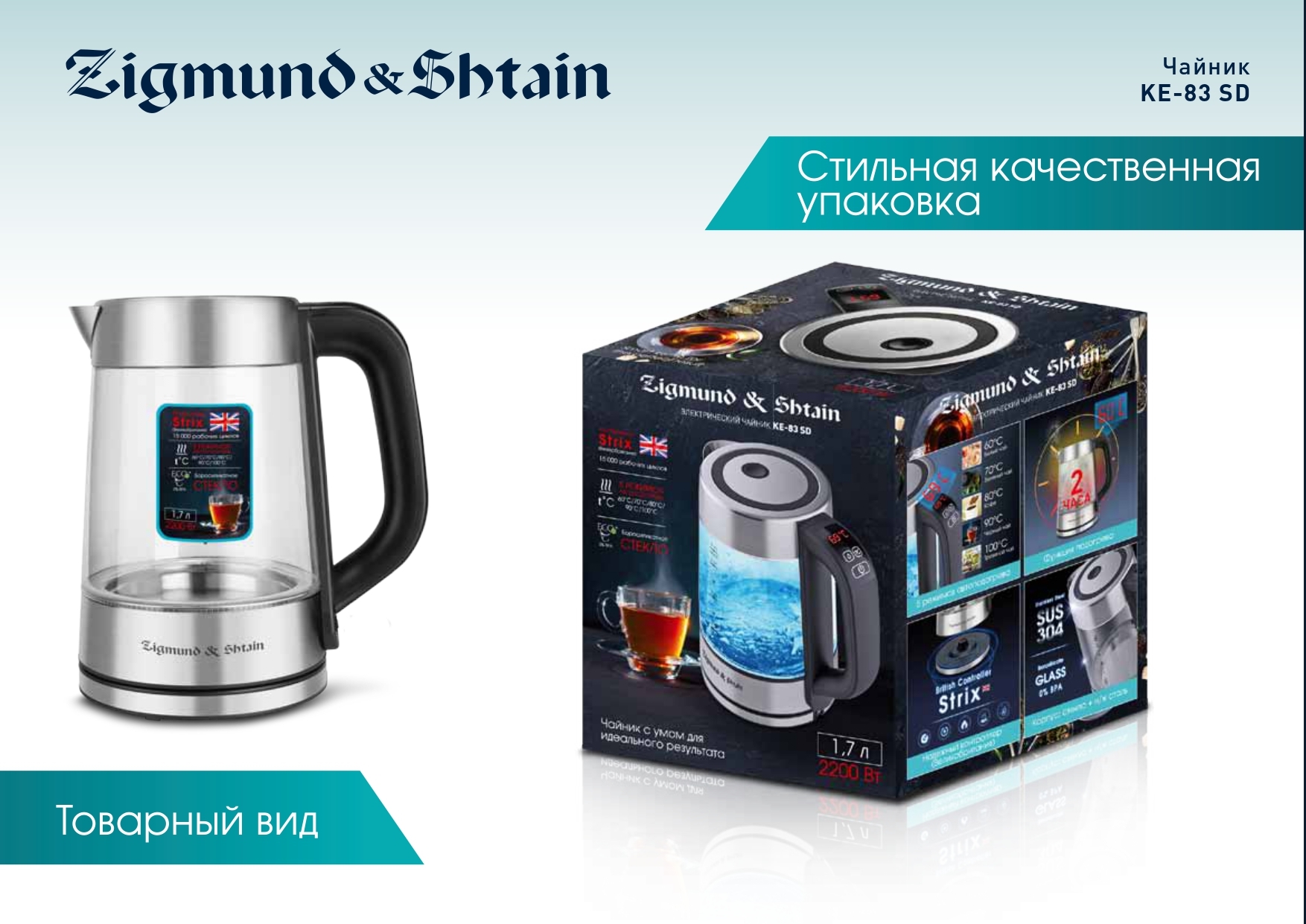 Электрический чайник Zigmund & Shtain KE-83 SD, серебристый, черный
