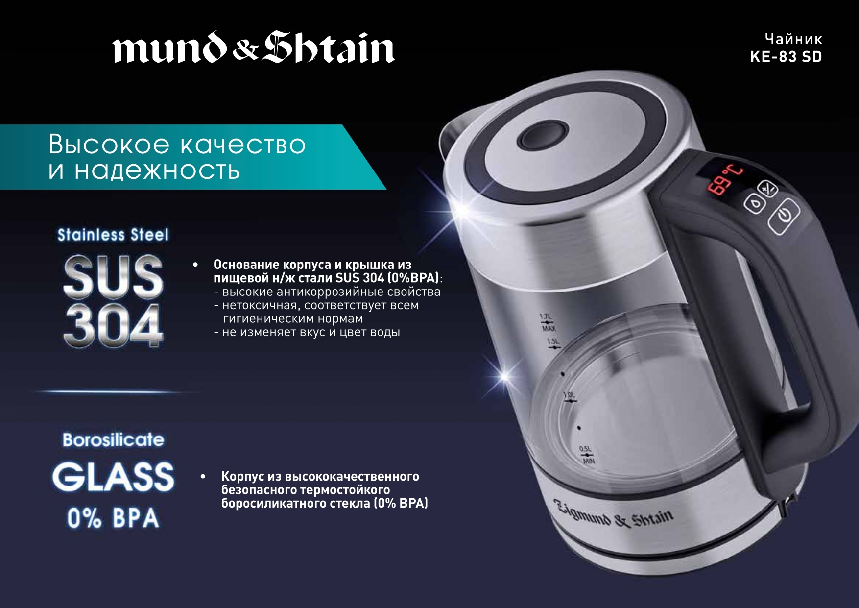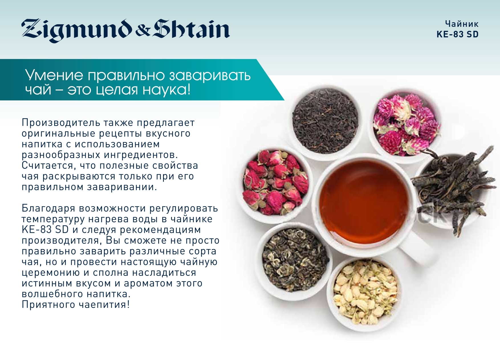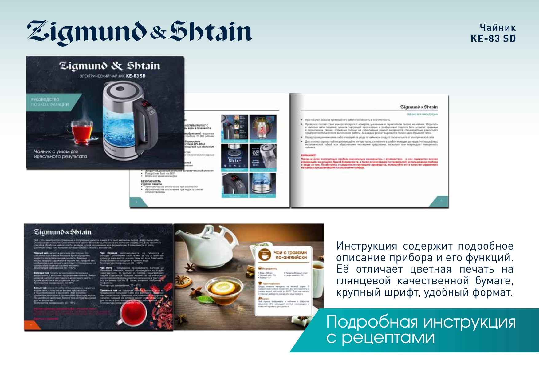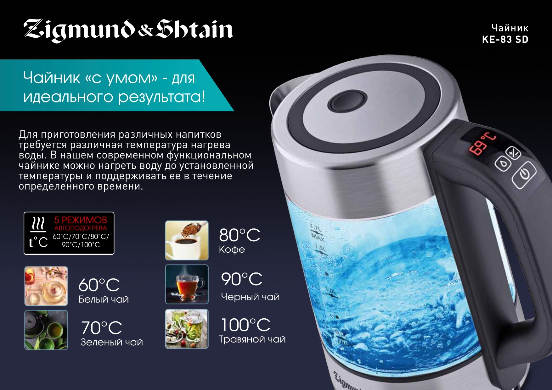 Электрический чайник Zigmund & Shtain KE-83 SD, серебристый, черный