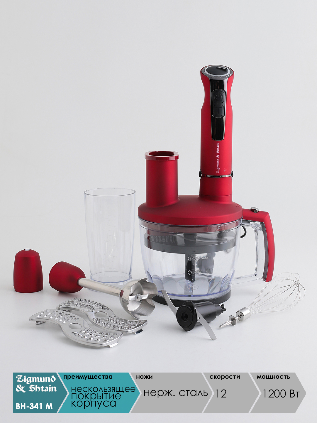 Погружной блендер Zigmund & Shtain BH-341 M, 1200 Вт, красный