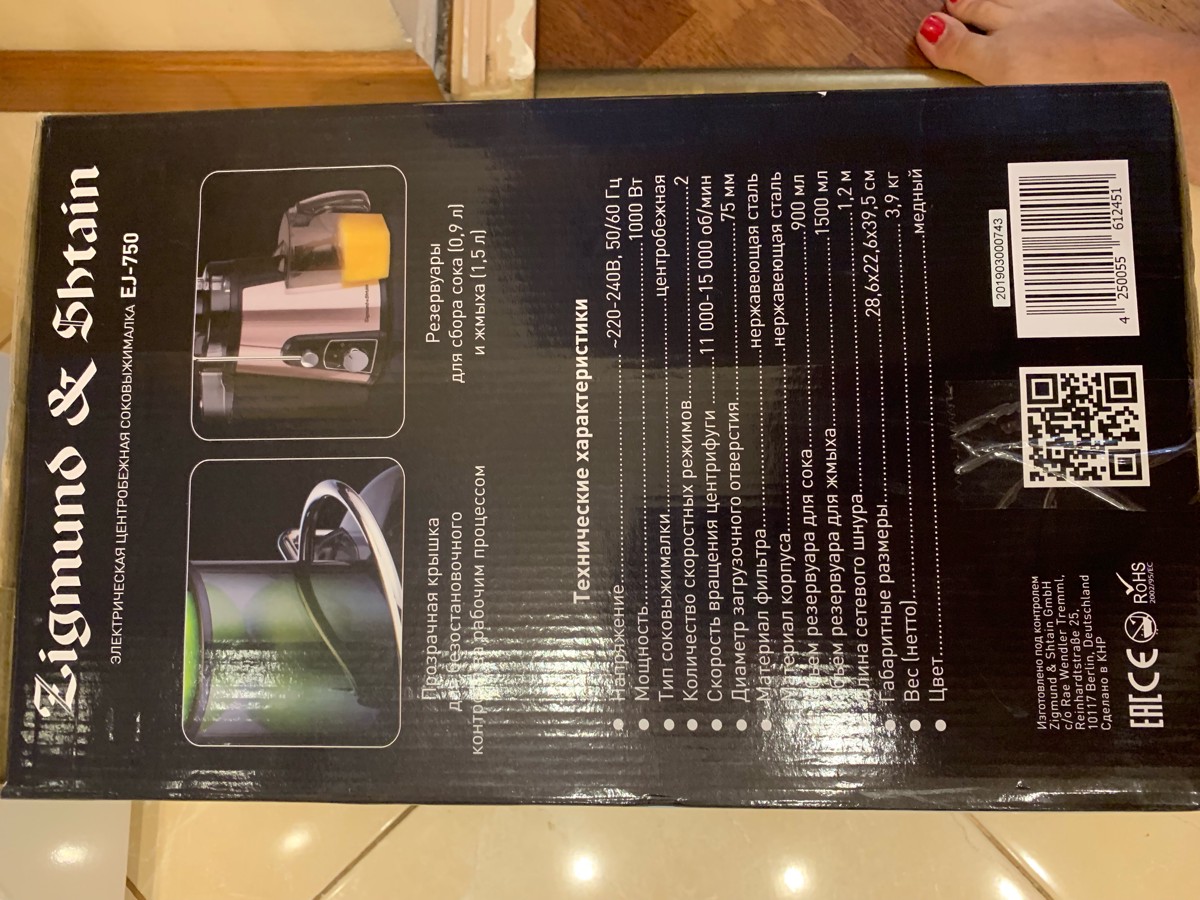 Соковыжималка центробежная Zigmund & Shtain EJ-750, бронза, черный