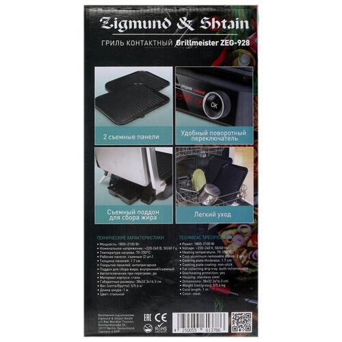 Соковыжималка центробежная Zigmund & Shtain EJ-751, 1000 Вт, серый металлик