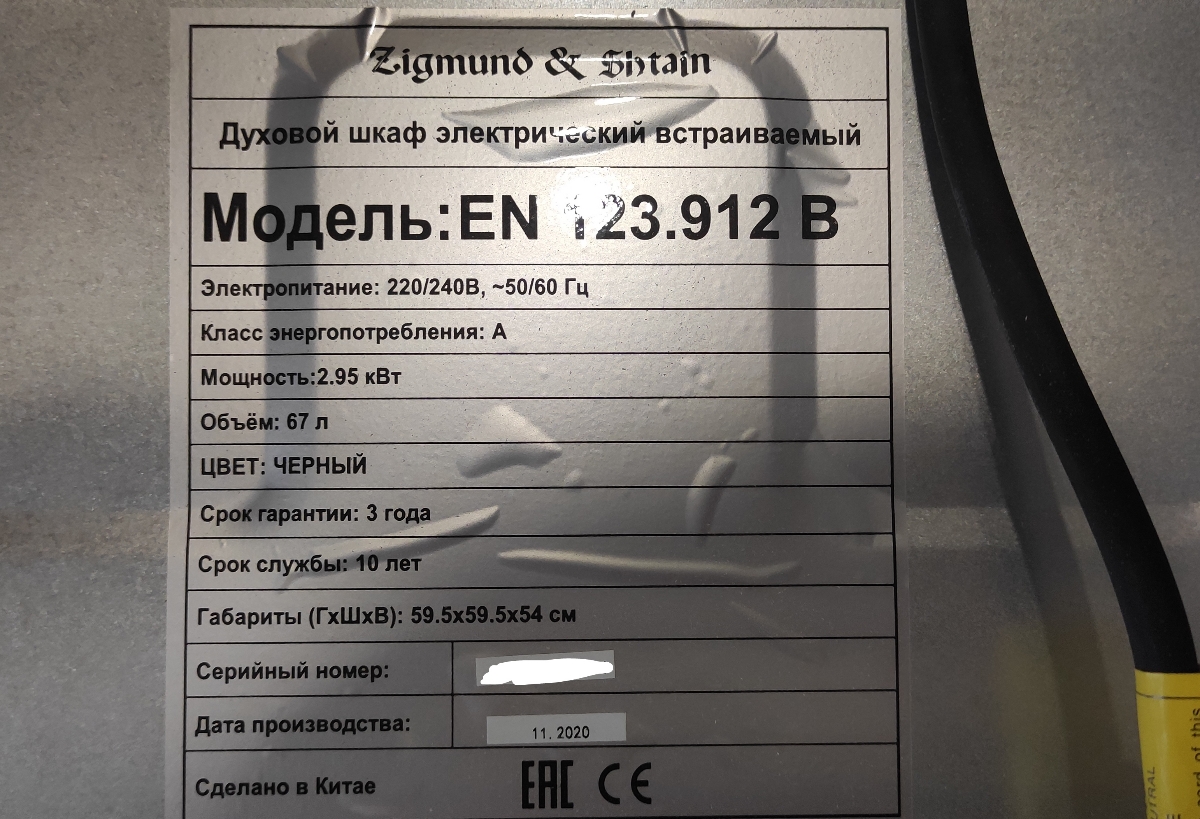 Электрический Духовой шкаф Zigmund & Shtain EN 106.511, 60 см