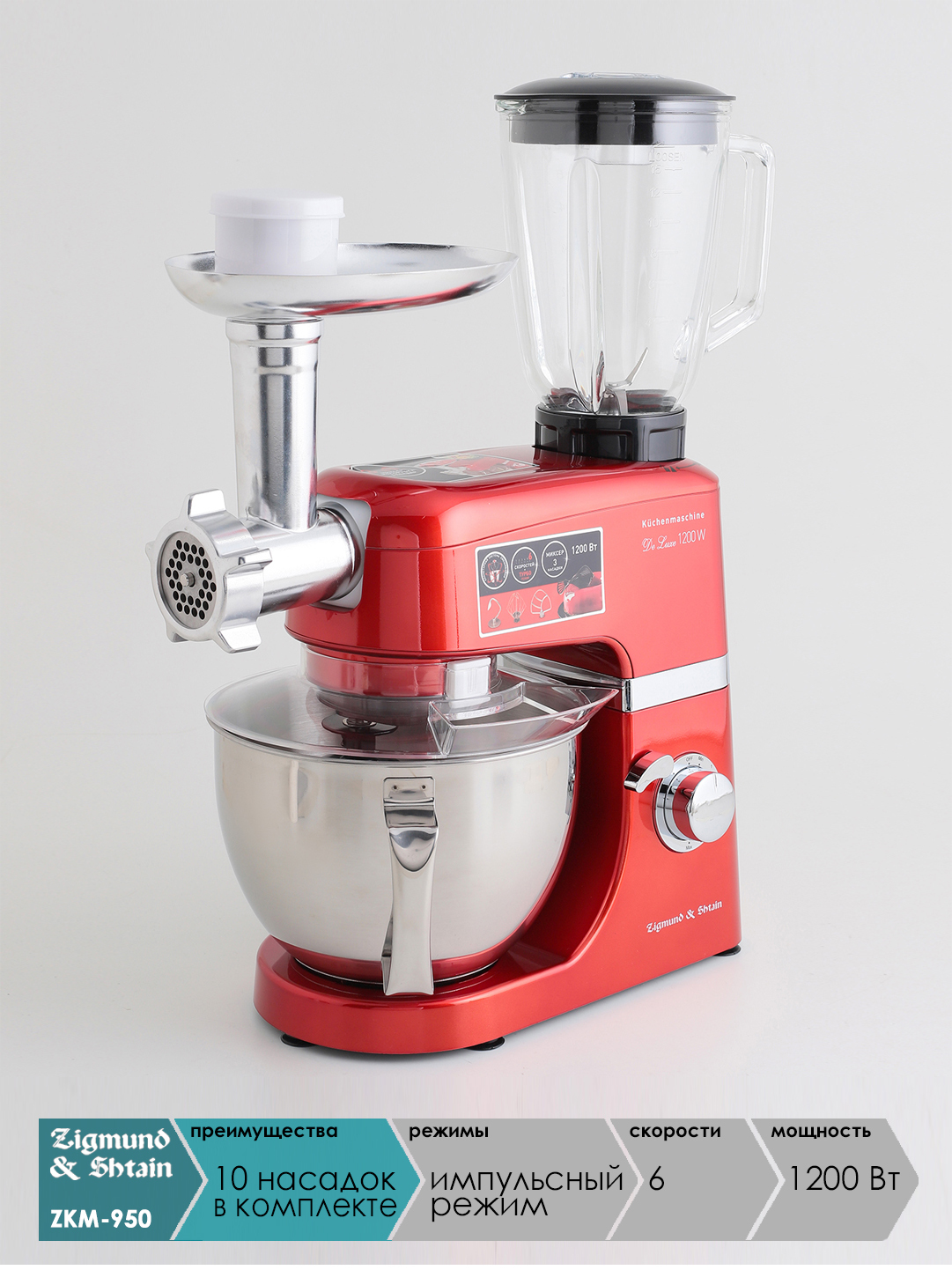 Кухонный комбайн Zigmund & Shtain ZKM-950 De Luxe, красный