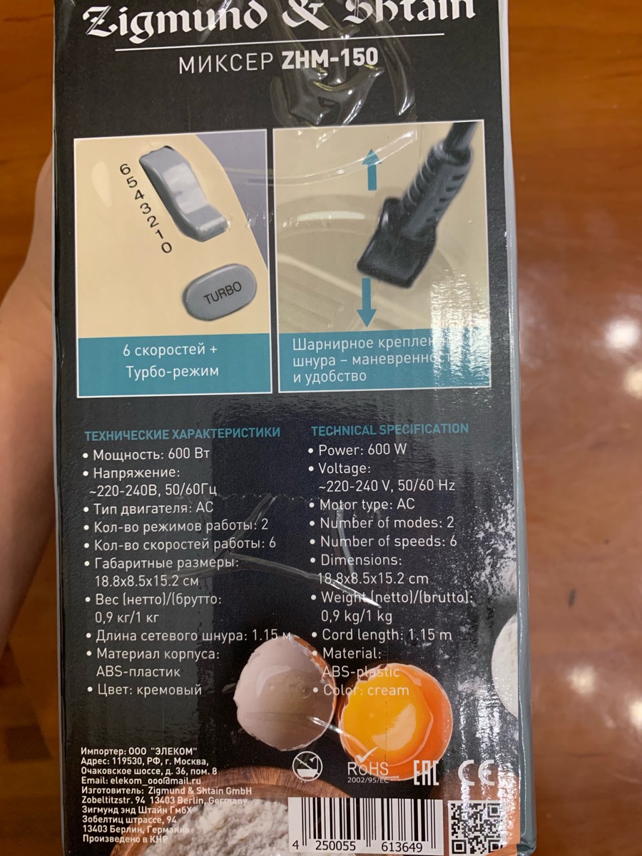 Ручной миксер Zigmund & Shtain ZHM-156, 600 Вт