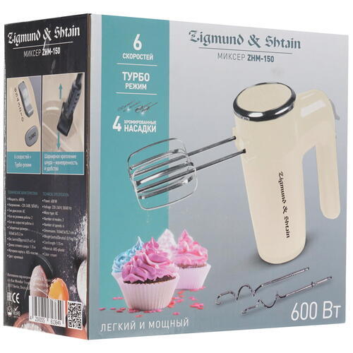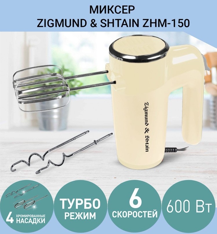 Миксер Ручной Кухонный для теста 600 Вт, кремовый Zigmund & Shtain ZHM-150,