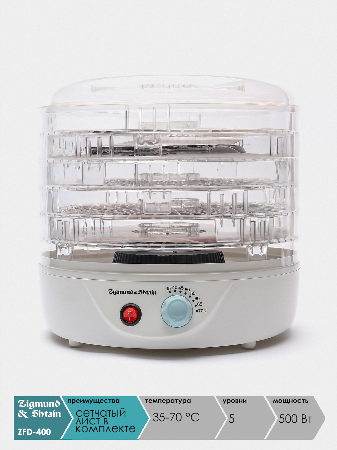 Сушилка для овощей и фруктов Zigmund & Shtain ZFD-400, белая