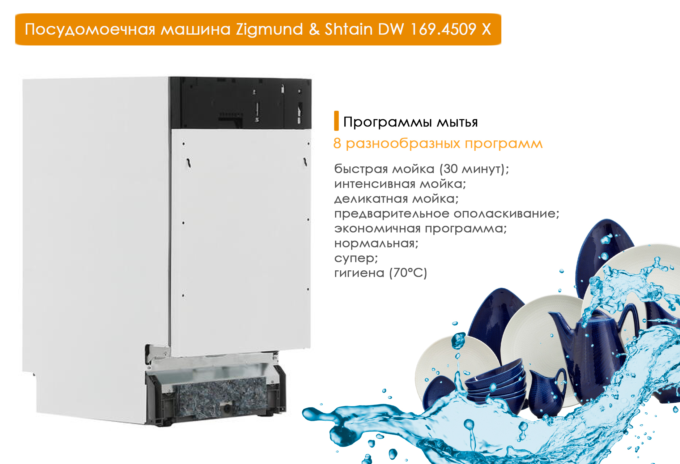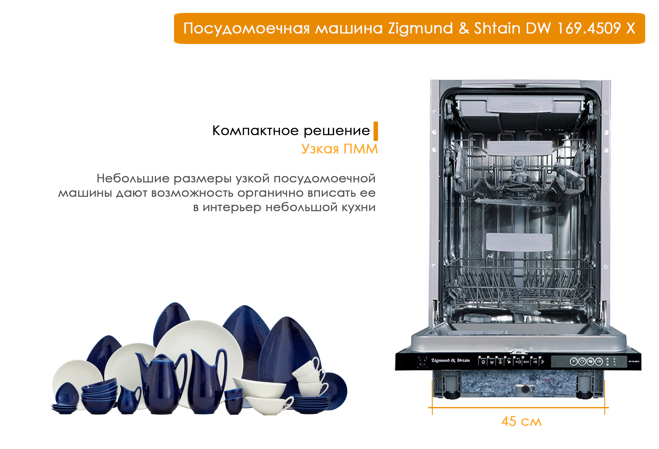 Посудомоечная машина Zigmund & Shtain DW 169.4509 X, 45 см, белый