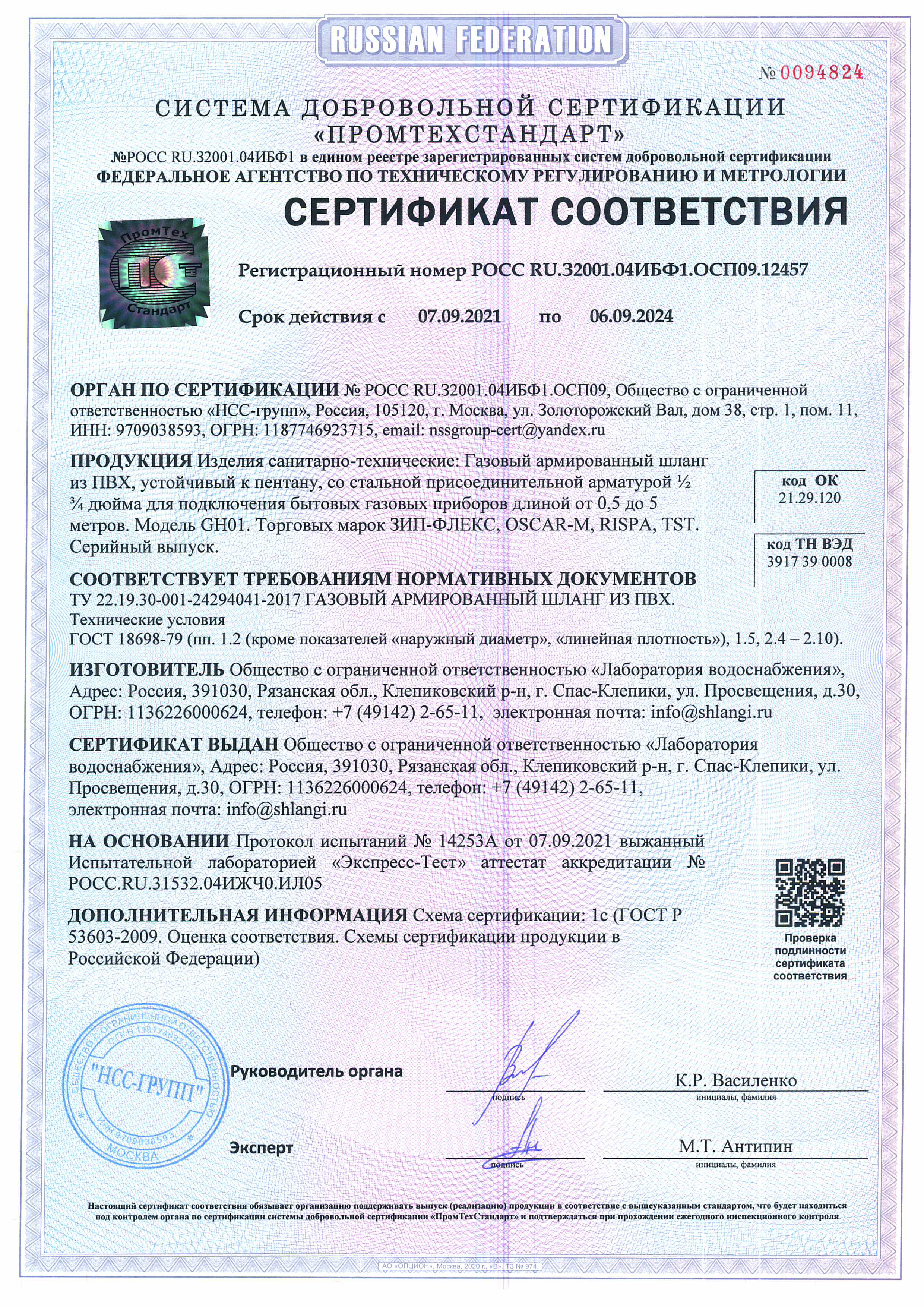 Шланг, подводка для газовых систем Зип-Флекс 1/2" Гайка-штуцер