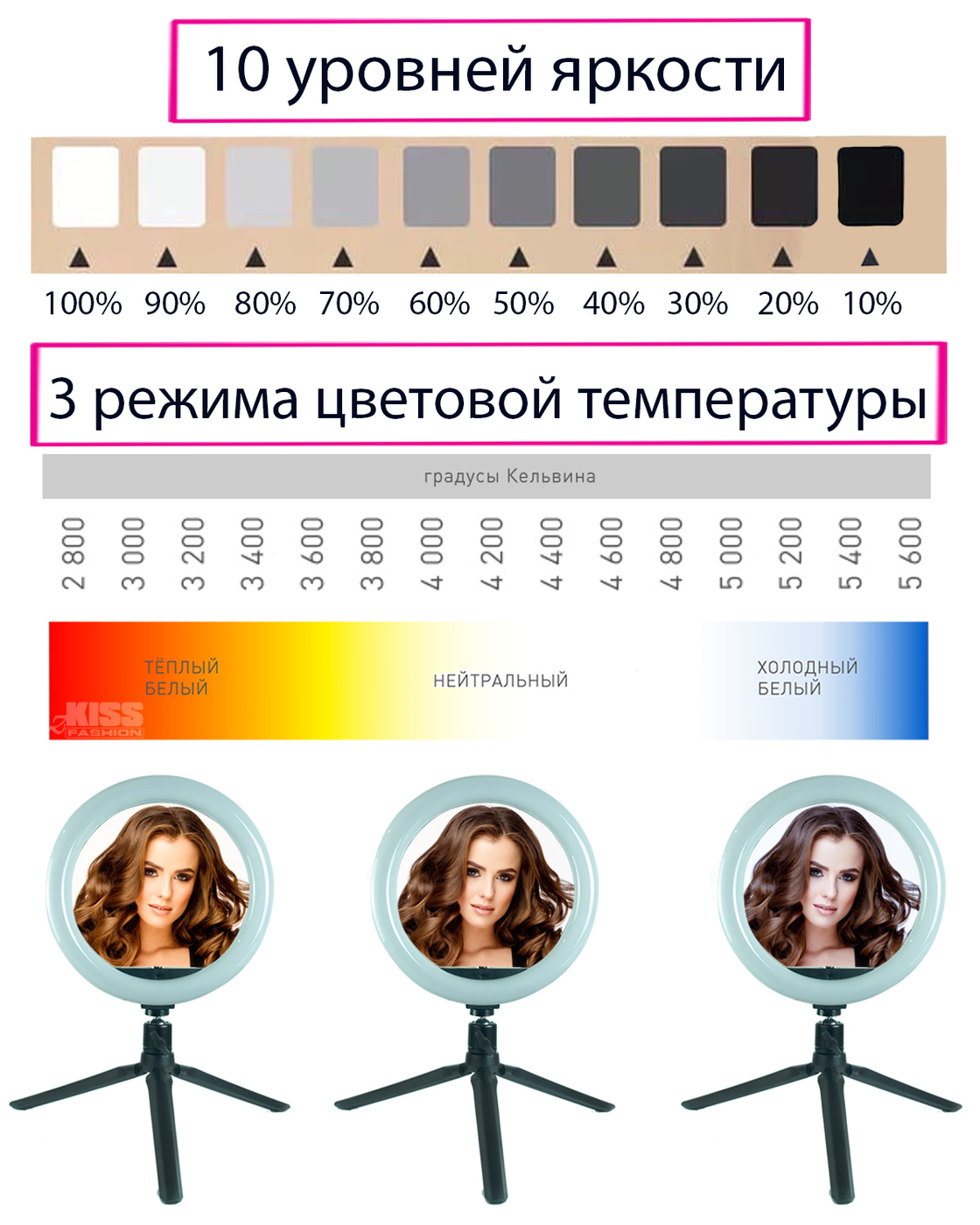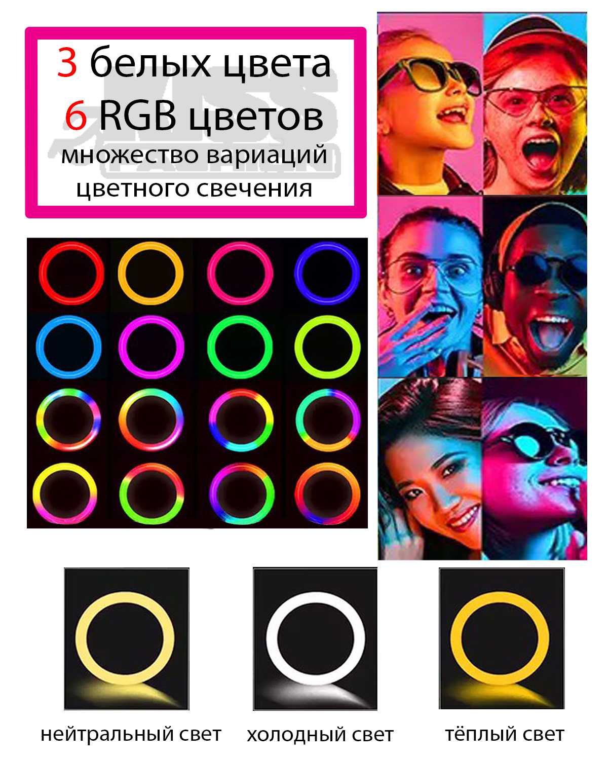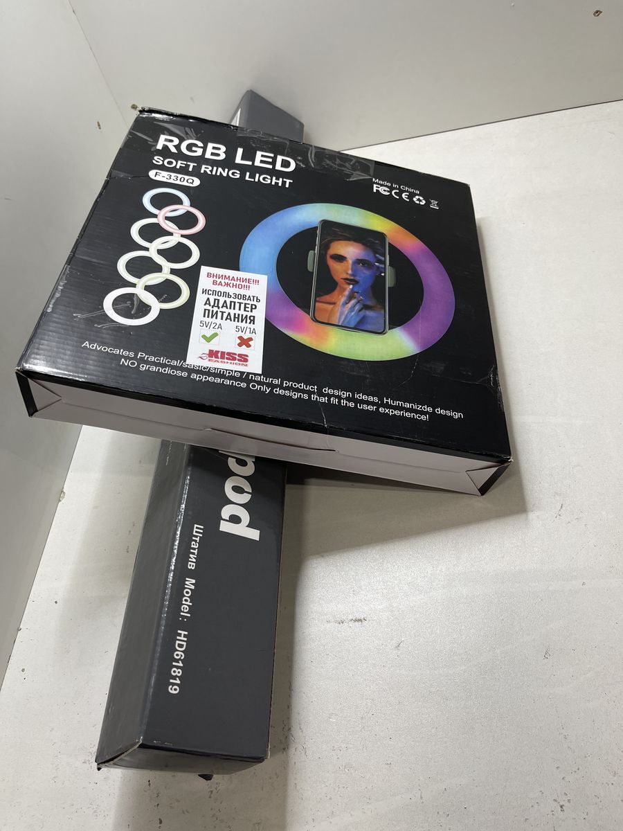 Цветная кольцевая лампа LED RGB zKissfashion 32 см со штативом держателем телефона селфи-пультом
