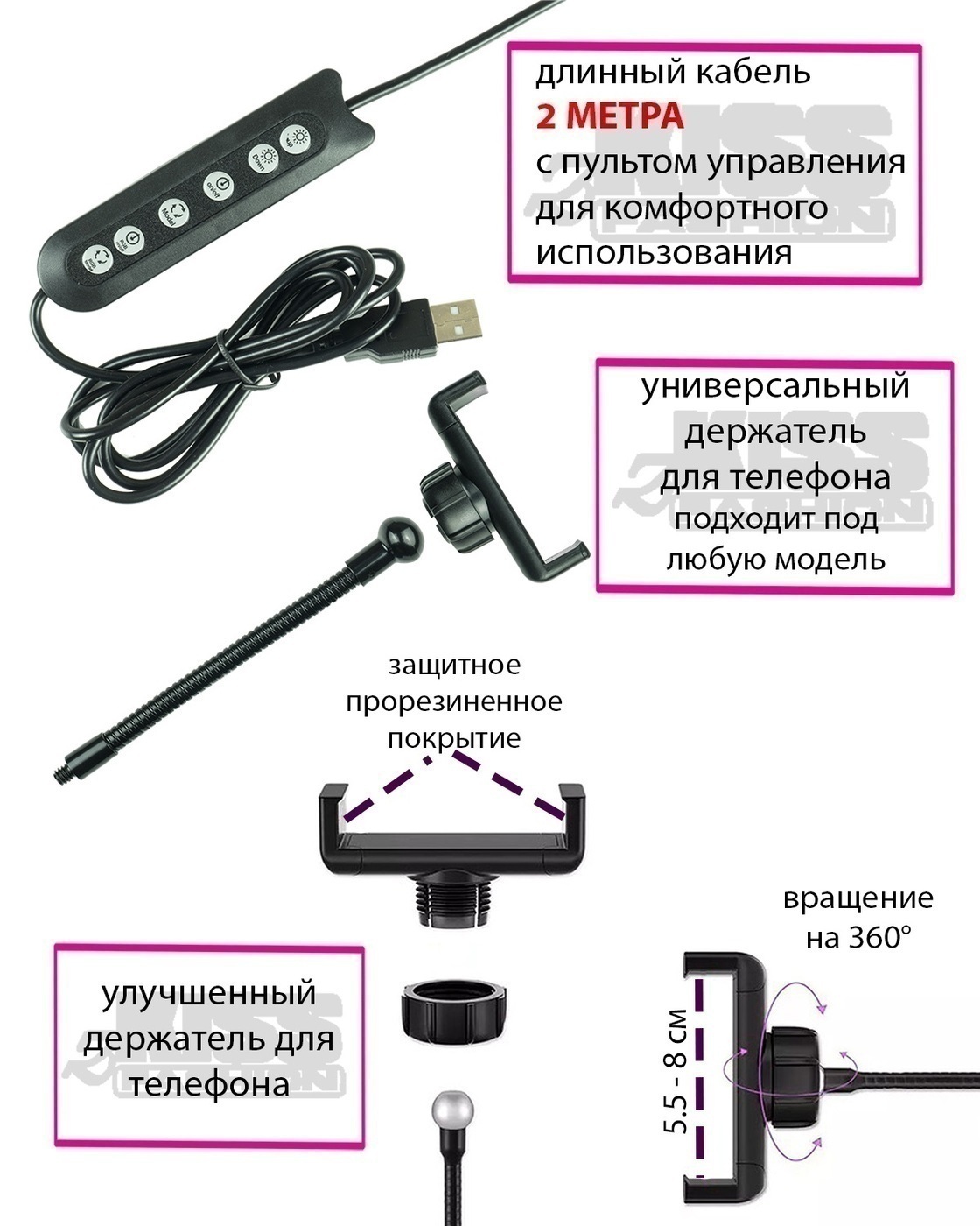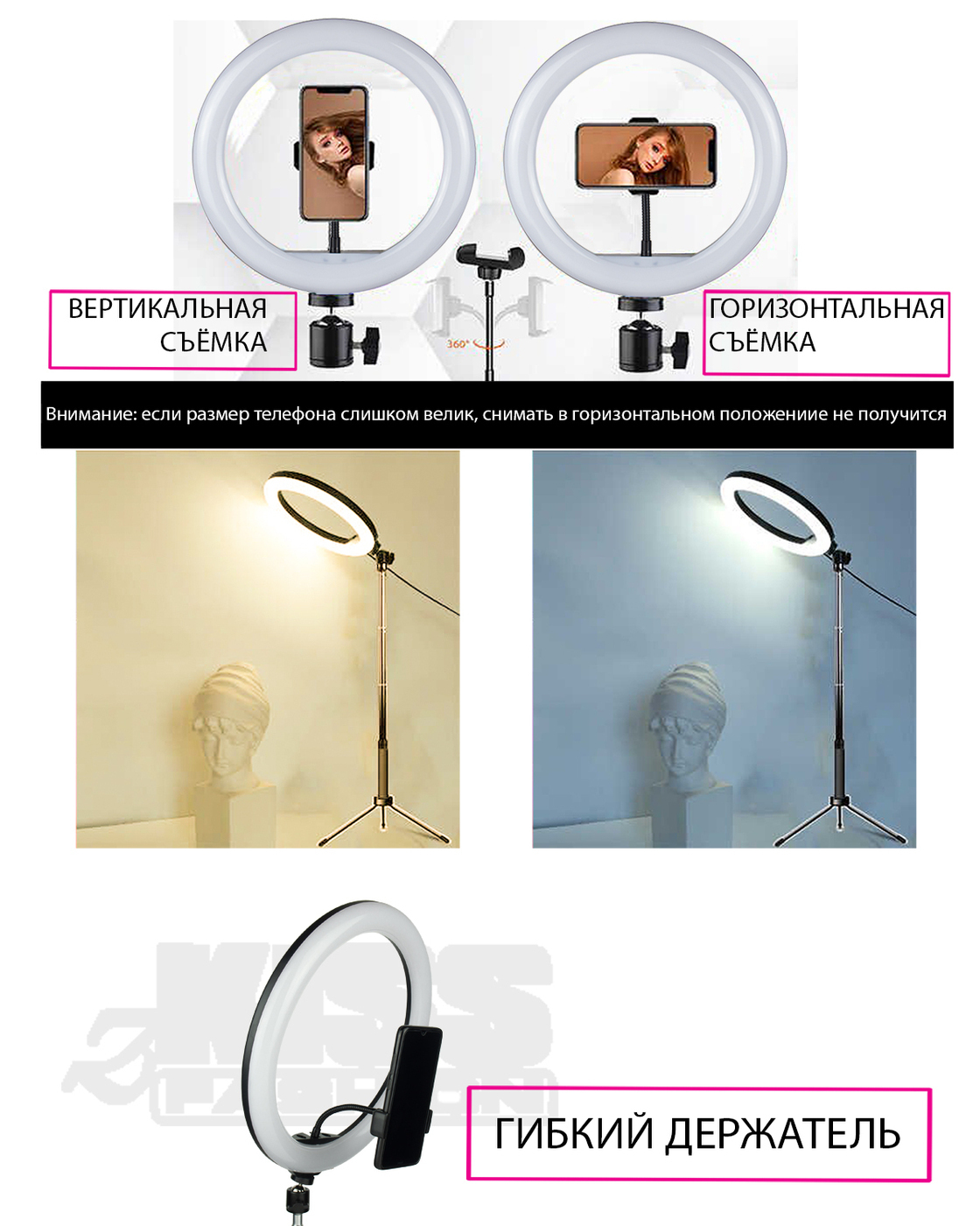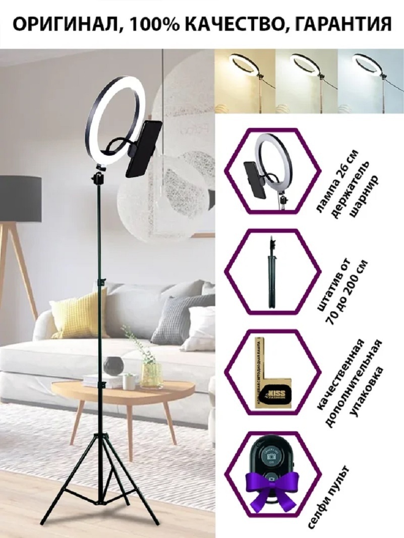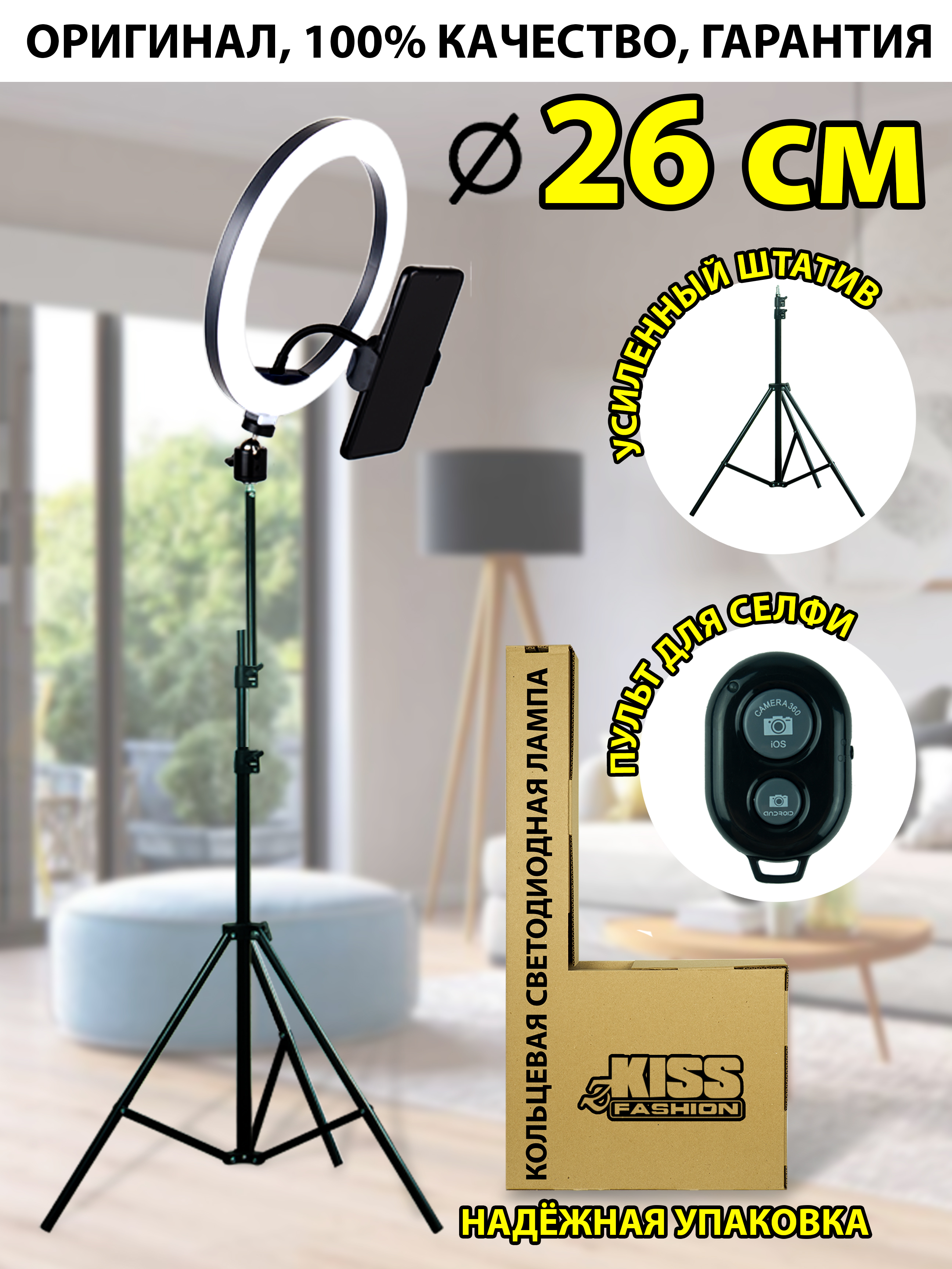 Кольцевая LED-лампа 26 см zKissFashion со штативом держателем для телефона и селфи-пультом. Модель 123143